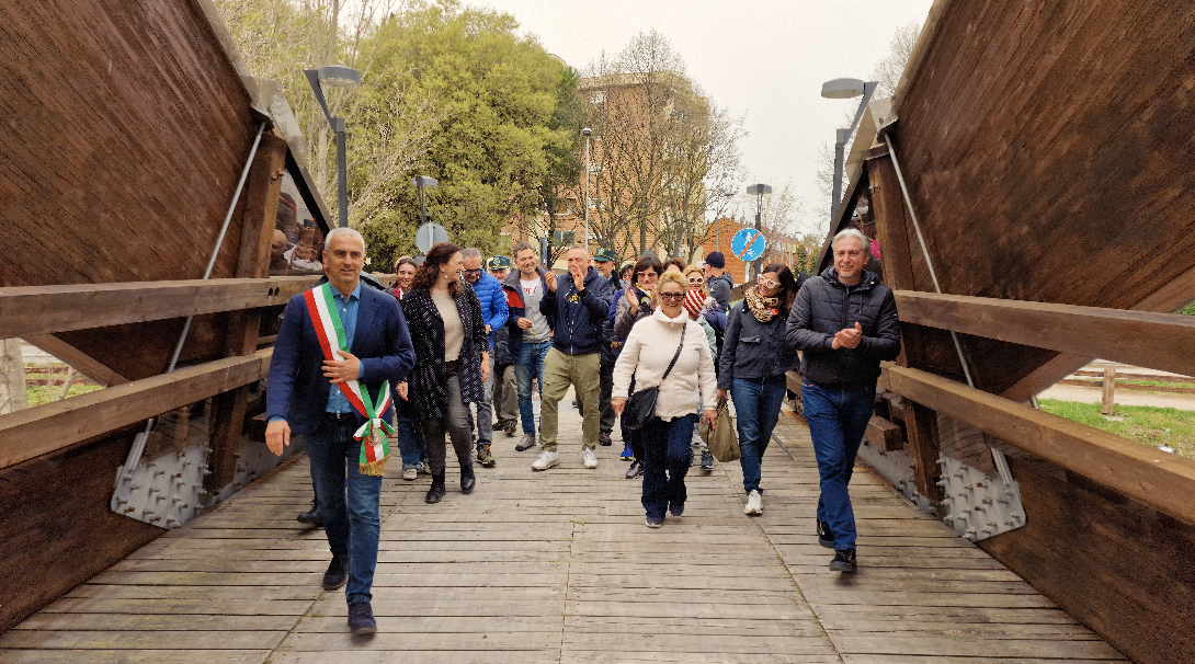 Sono stati il sindaco Jamil Sadegholvaad, gli assessori Mattia Morolli, Roberta Frisoni, Francesca Mattei, con le Guardie Ecologiche Volontarie e tanti cittadini - questo pomeriggio - a riaprire alla città il ponte degli Scout, riqualificato e restituito a pedoni e ciclisti che lo attraversano a tutte le ore, da oltre vent’anni.