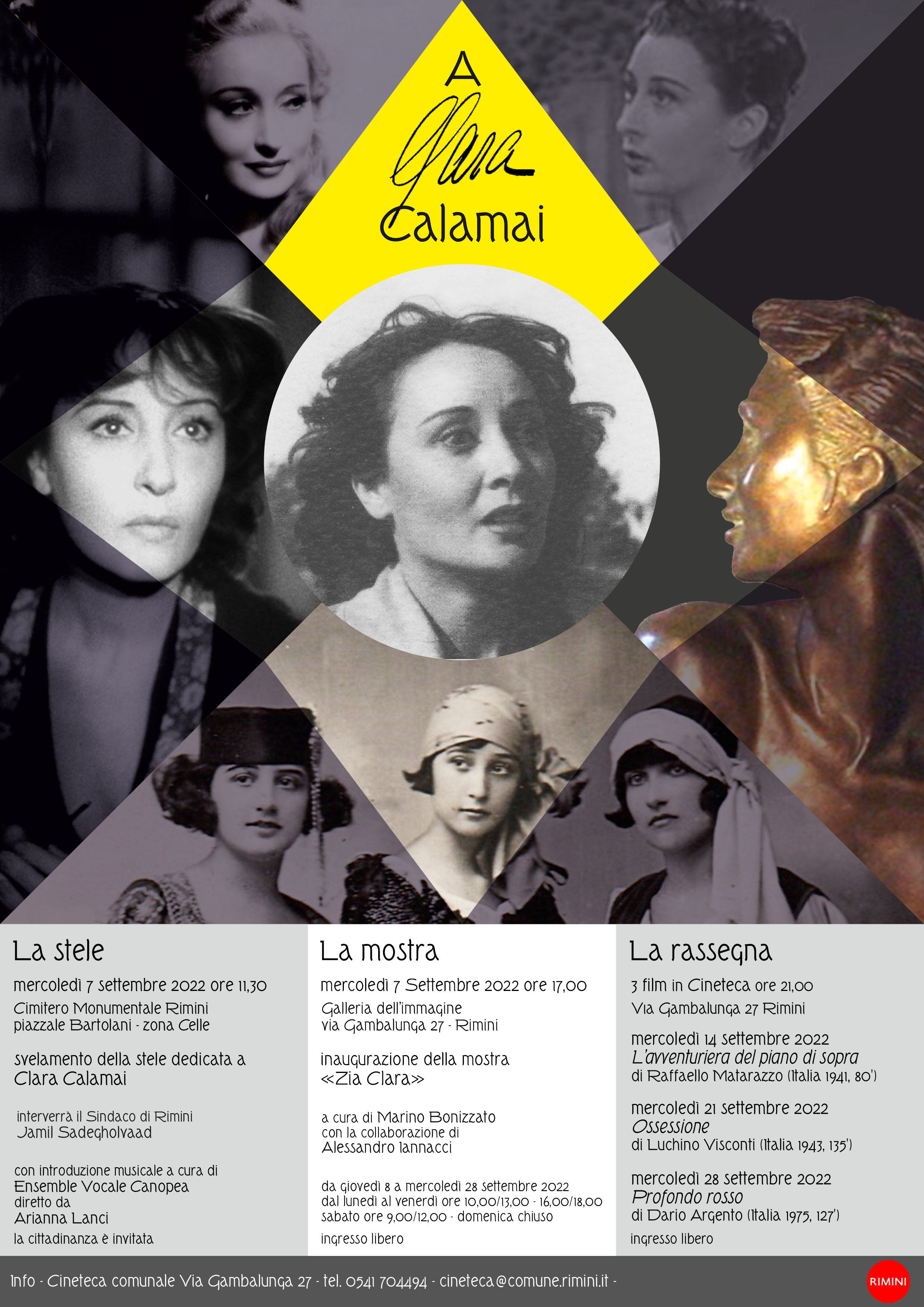A partire da mercoledì 7 settembre il Comune di Rimini ha deciso di ricordarla con un programma di iniziative dal titolo “A Clara Calamai”.