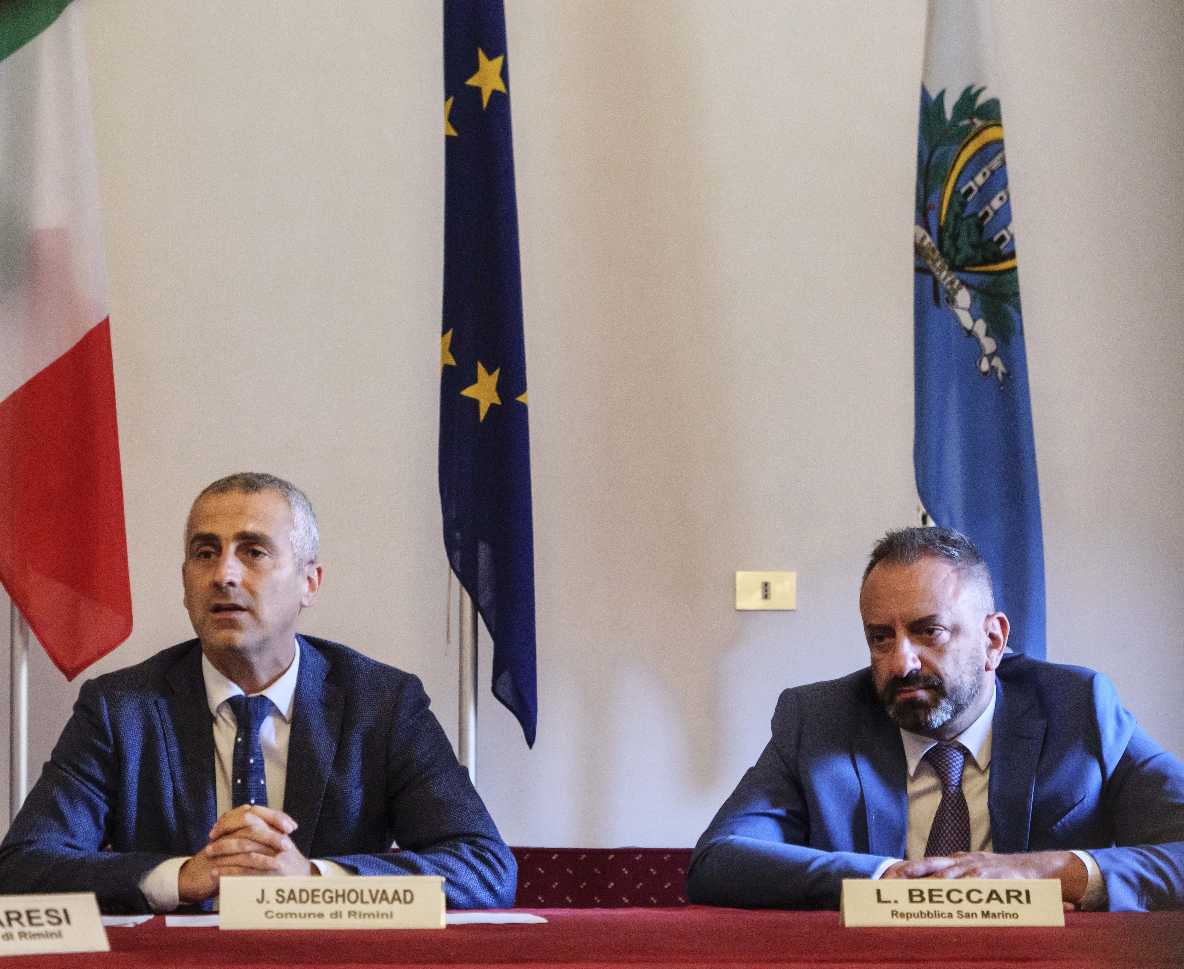 Le linee di indirizzo dell'accordo sono state presentate questa mattina durante una conferenza stampa a cui hanno preso parte il Segretario di Stato per gli Affari Esteri, per la Cooperazione Economica Internazionale e le Telecomunicazioni, Luca Beccari, il Segretario di Stato per le Finanze e il Bilancio e i Trasporti, Marco Gatti, il Segretario di Stato per l’Istruzione e la Cultura, l’Università e la Ricerca Scientifica, le Politiche Giovanili, Andrea Belluzzi, il Segretario di Stato per l’Industria, l’Artigianato e il Commercio, la Ricerca Tecnologica, la Semplificazione Normativa, Fabio Righi, il Sindaco di Rimini Jamil Sadegholvaad, l’Assessore allo sport e patrimonio Moreno Maresi e il Segretario generale del Comune di Rimini Diodora Valerino.