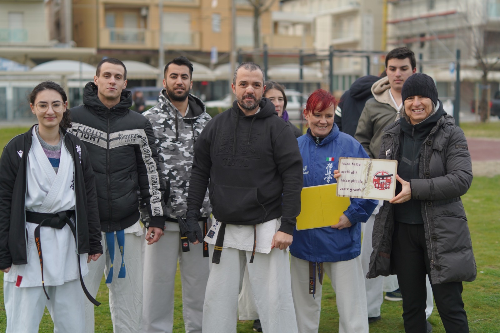 Gli atleti della scuola di karate inaugurano la rinnovata palestra a cielo aperto dei giardini di Rivazzurra.