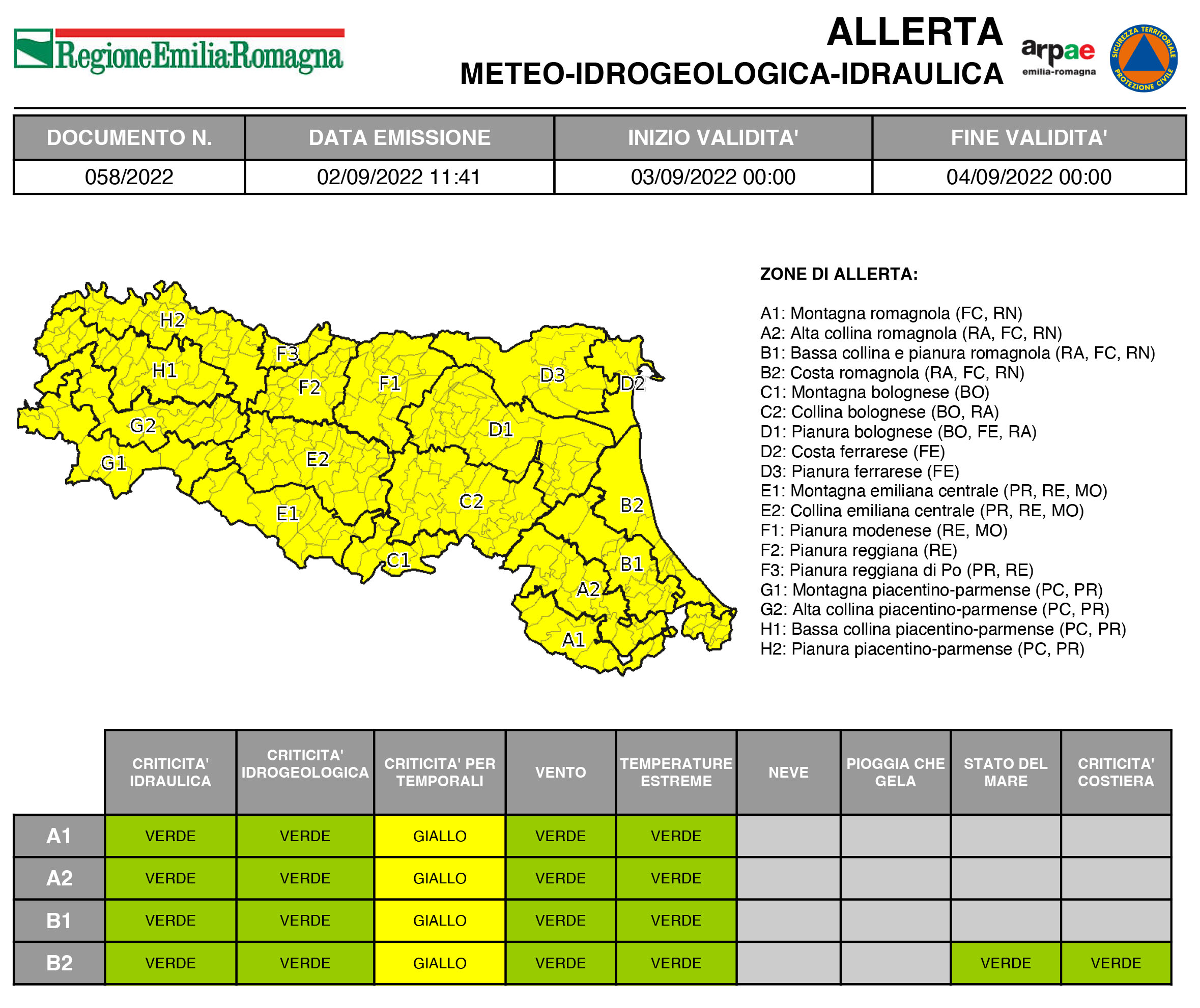 L’agenzia regionale di Protezione civile ha emesso un'allerta gialla di 24 ore per criticità temporali che riguarda anche l’area del riminese.