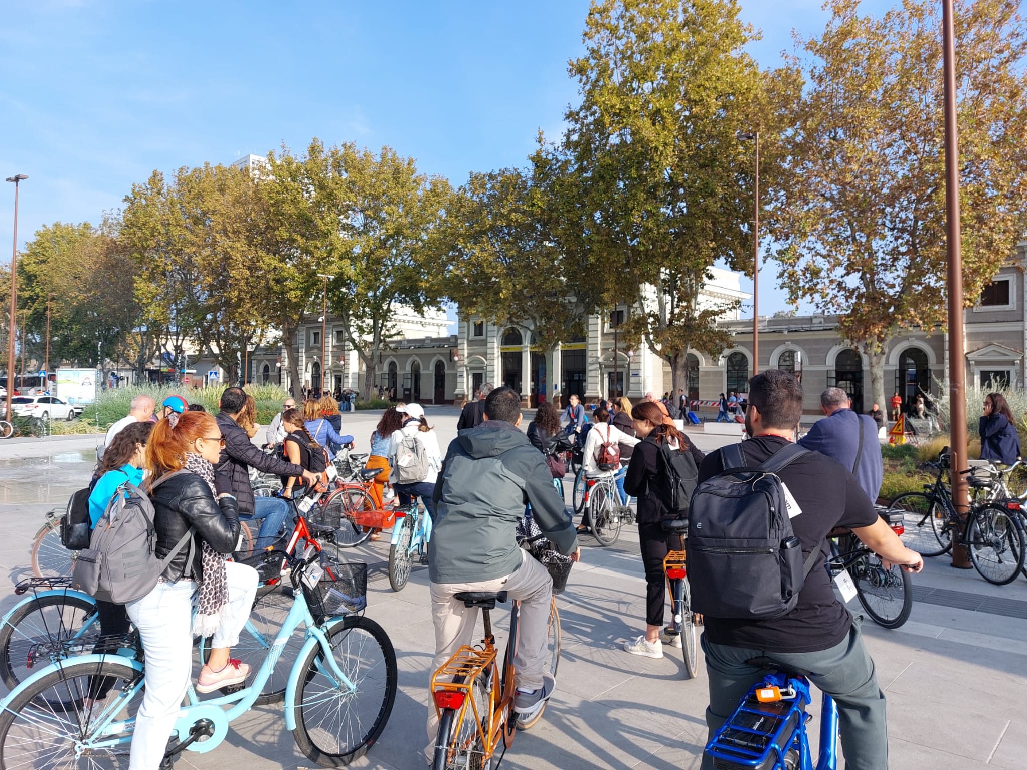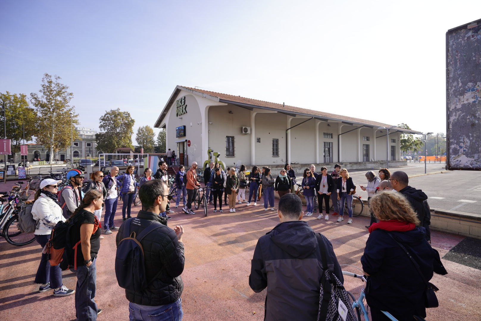 Questa mattina, venerdì 7 ottobre, si è svolta infatti la visita da parte di circa 60 partecipanti alla scoperta della città di Rimini, così da studiare, analizzare e approfondire le recenti trasformazioni urbane che hanno interessato il territorio e che possono rappresentare un modello d’ispirazione per gli altri municipi della Regione. Il viaggio è cominciato dal Bike Park vicino alla stazione, dove i tecnici e funzionari dei diversi comuni aderenti all’iniziativa hanno noleggiato la bicicletta per poi fare tappa in diversi luoghi cittadini che negli ultimi anni sono stati al centro di progetti di rigenerazione urbana che gli hanno permesso di indossare una nuova veste all’insegna della sostenibilità, come la Scuola primaria Ferrari, Piazza Malatesta (con il suo bosco urbano e il Fellini Museum), il Giardino del Part – Palazzi d’Arte Rimini, la Piazza sull’Acqua, Porta Galliana e il Parco del Mare.