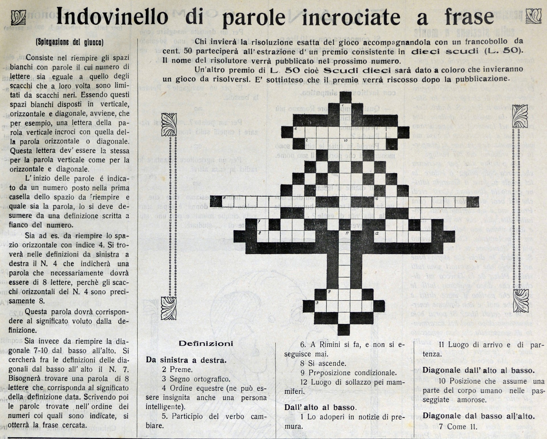 La Biblioteca Gambalunga di Rimini celebra un secolo di cruciverba con l'iniziativa Il cruciverba gambalunghiano. Il gioco, a distanza di 100 anni tondi dalla sua pubblicazione, invita i partecipanti a mettere alla prova le loro abilità logiche e linguistiche, ma anche a scoprire la biblioteca e le risorse disponibili sul suo sito web. Gli interessati possono completare il cruciverba e consegnarlo entro il 1° aprile 2025, con la possibilità di vincere premi estratti tra le soluzioni corrette. Maggiori dettagli sono disponibili sul sito ufficiale della biblioteca.