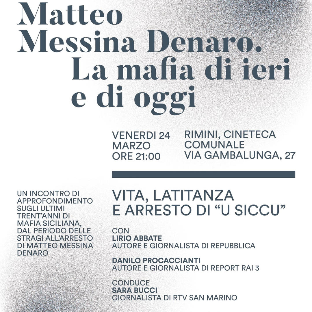 Fra i tanti momenti di approfondimento, in cineteca si svolgerà un incontro sugli ultimi trent’anni di mafia siciliana, dal periodo delle stragi all’arresto di Matteo Messina Denaro con Lirio Abbate, autore e giornalista che da sempre si dedica al racconto delle dinamiche criminali e con Danilo Procaccianti, autore delle inchieste di Report e Presa Diretta su Messina Denaro (venerdì 24 marzo ore 21).