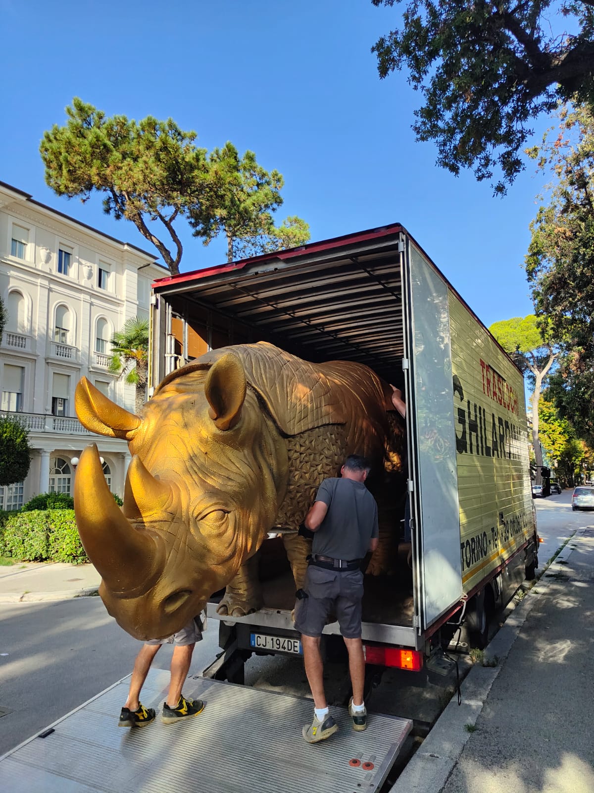 La rinocerontessa d’oro del Fellini Museum è partita alla volta del palazzo della Fondation Jérôme Seydoux-Pathé di Parigi in occasione della mostra “Fellini: Maestro!”. Il Fellini Museum sarà presente alla mostra anche con tre caricature del fondo Bassetti e con uno schizzo a matita per il film Casanova