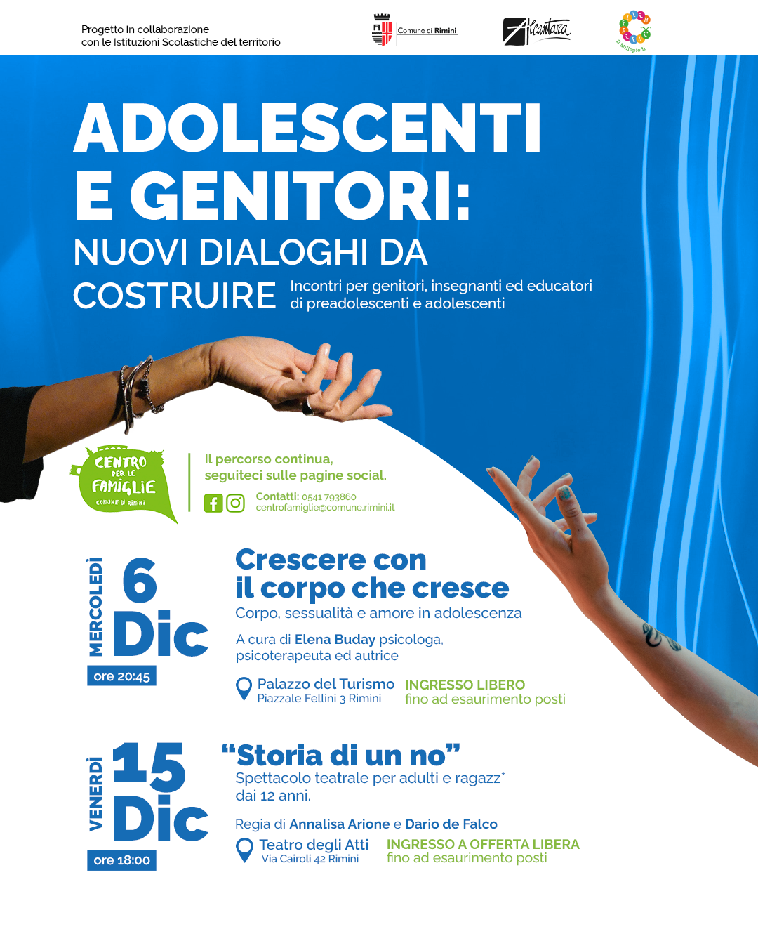 Riconoscere i sentimenti in un periodo delicato ed esposto come quello dell’adolescenza, imparare ad accettare i propri e rispettare quelli degli altri, sono alcuni dei temi di grande attualità a cui il Centro per le famiglie di Rimini dedicherà una serie di incontri, conferenze e spettacoli dedicati a genitori, insegnanti ed educatori di giovani preadolescenti e adolescenti. Lo scopo è quello di indagare nuovi dialoghi da costruire tra adolescenti e genitori; a dare inizio al percorso una doppia apertura nel mese di dicembre. Il programma proseguirà nel nuovo anno presso gli Istituti Comprensivi del nostro territorio, con tanti appuntamenti a cura di esperti.