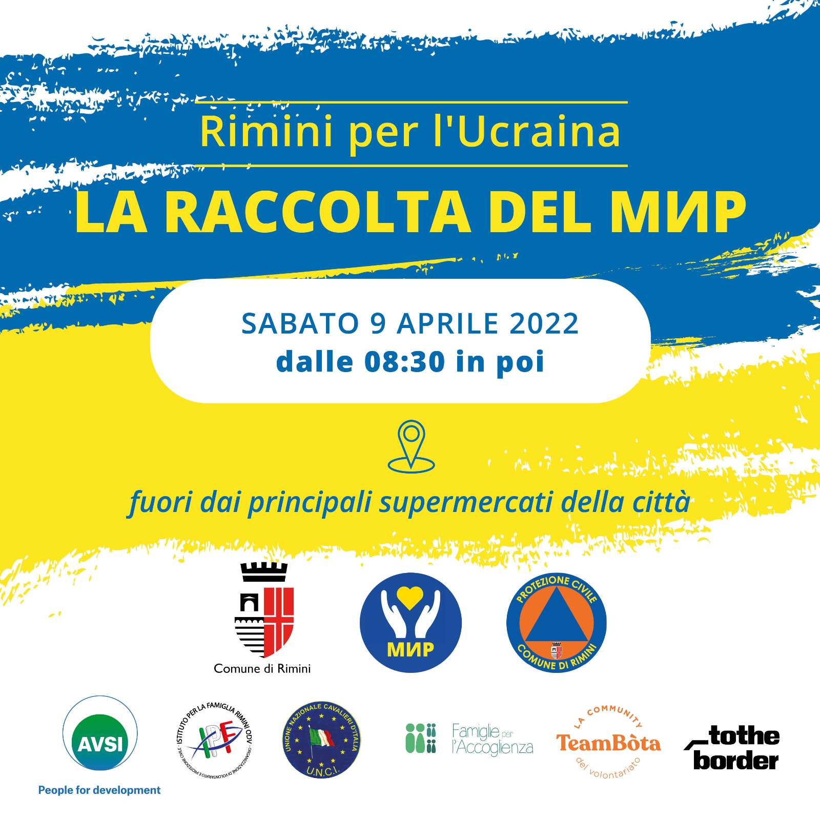 La realtà locale “мир: Rimini per l’Ucraina”, alla luce del successo dell’ultima spesa solidale, organizza, insieme ad altre associazioni e realtà locali, una seconda raccolta alimentare a favore della comunità ucraina riminese presso i principali supermercati del territorio.
