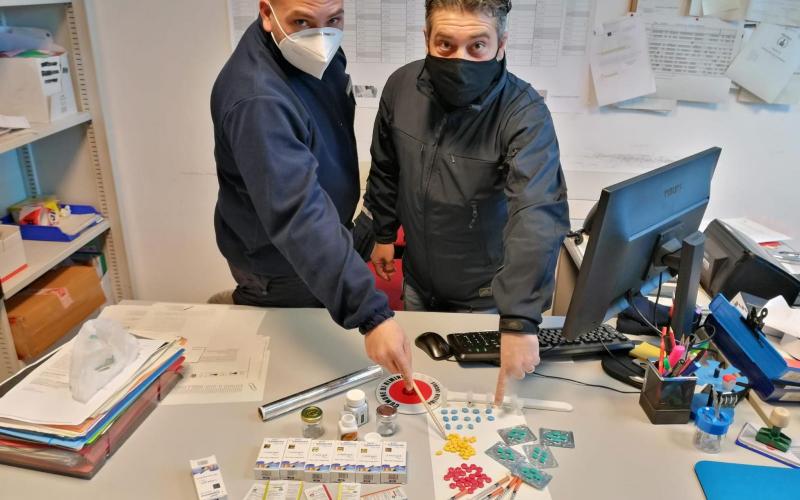 Nella barberia gli agenti hanno sequestrato un ingente quantitativo di farmaci illegali tipo “viagra”, sotto forma di pillole (più di 180 quelle sequestrate tra blu, rosse e gialle), fiale o liquidi. Ma le sorprese non erano finite. Nel retrobottega del coiffeur era infatti nascosto un vero e proprio laboratorio per la somministrazione intracavernosa del farmaco illegale, con siringhe (una cinquantina), fiale (almeno 5) e tutto l’occorrente. Farmaci illegali non tracciati dell’Agenzia Italiana del Farmaco (AIFA), importati dall’estero o acquistati su internet. Ogni parte del salone, cassetti, scatole, armadi, erano ricolmi di pasticche e della carta stagnola utilizzata per confezionare i prodotti. Insieme agli agenti sono anche intervenuti le unità cinofile, con i cani antidroga, che non hanno però rinvenuto nei locali tracce di stupefacenti .