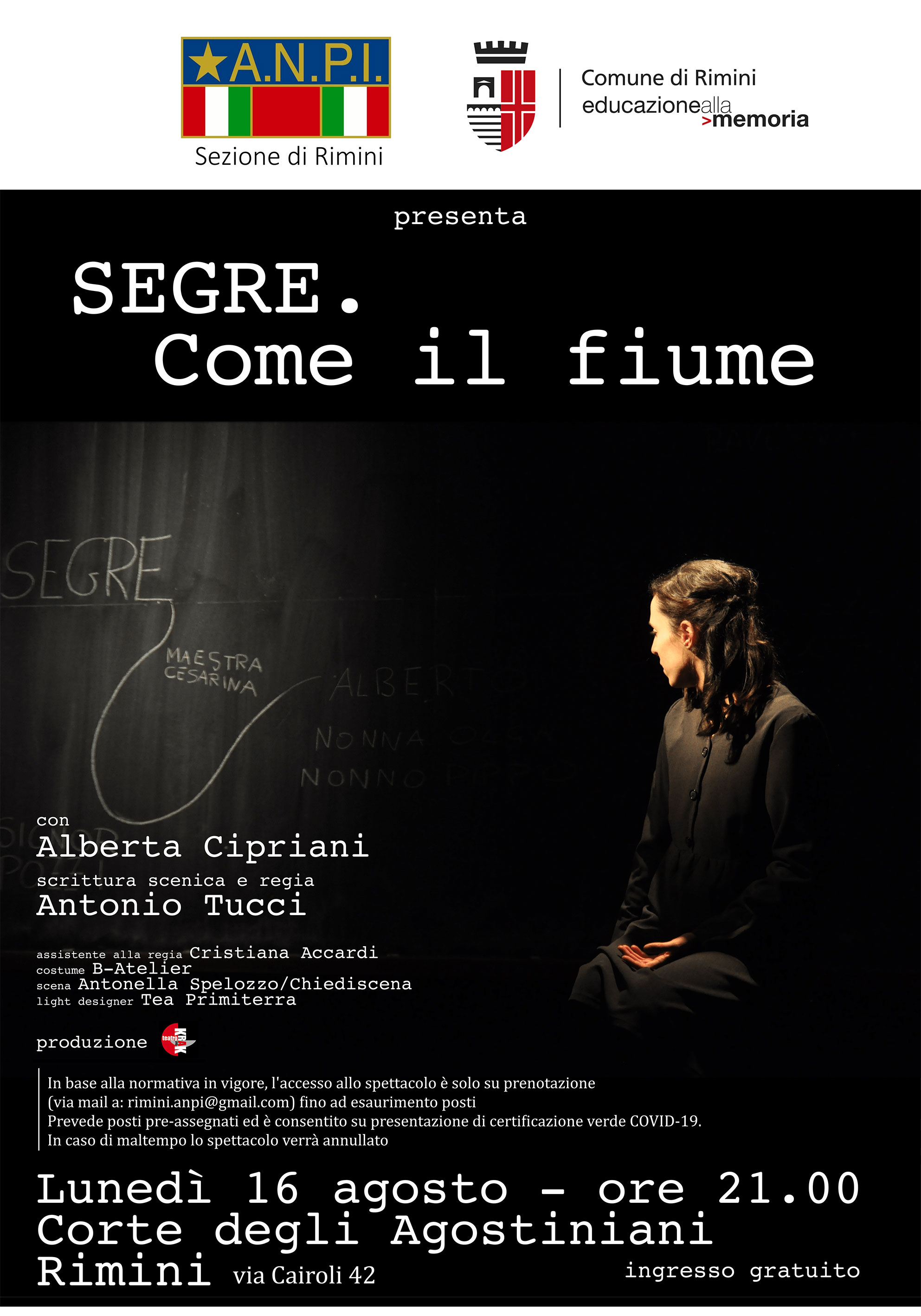 "Segre come il fiume" è il titolo dello spettacolo teatrale che la compagnia del Teatro del Krak porterà in scena il 16 agosto 2021 alle ore 21 alla Corte degli Agostiniani di Rimini.