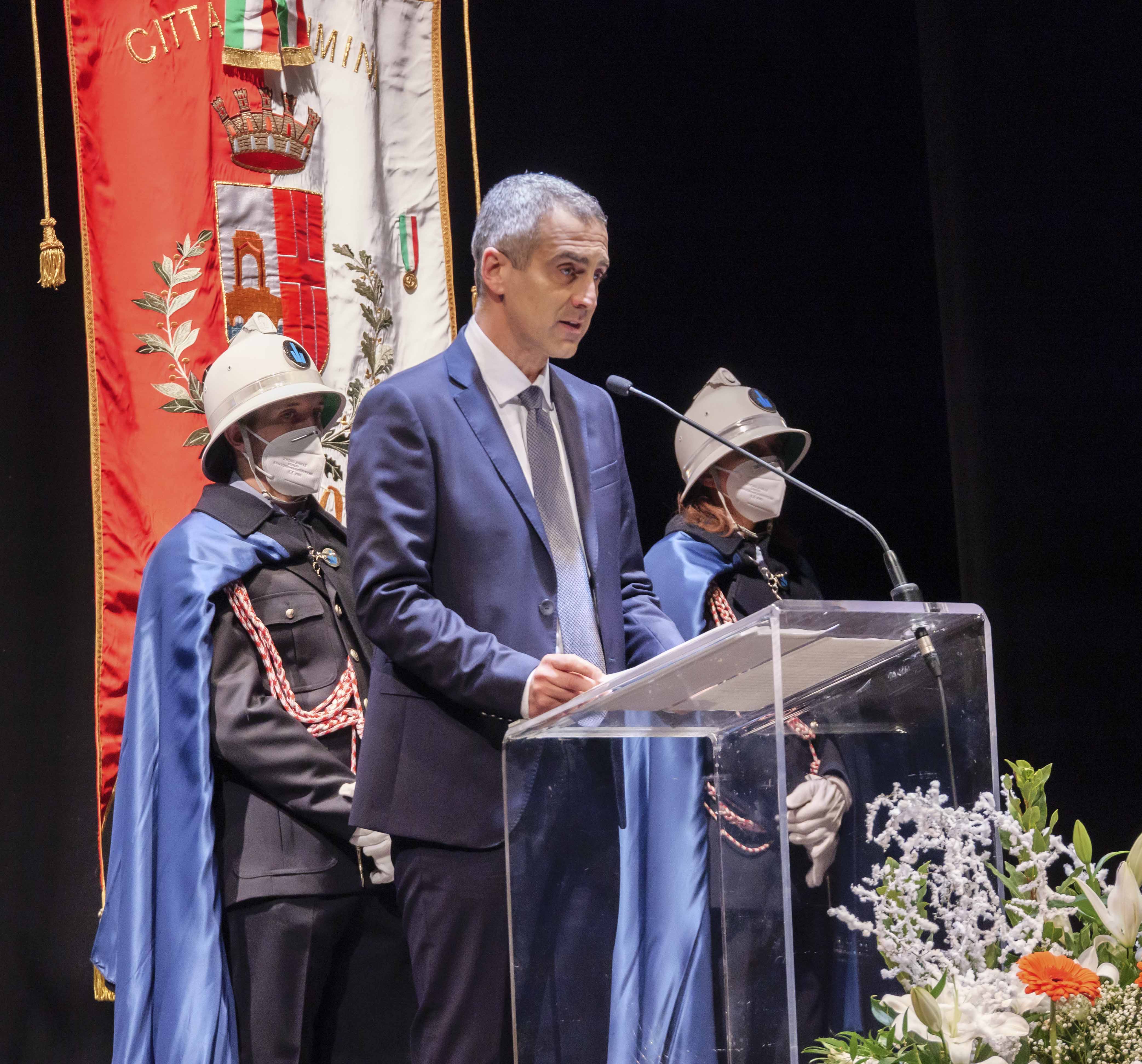 Ora lascio la parola ai due Sigismondo d’Oro 2021. La serata, come il merito, è tutta loro. Io vi ringrazio. Ringrazio il consiglio comunale, le istituzioni, il nostro Vescovo Lambiasi, i lavoratori, le famiglie, tutti i riminesi che hanno consentito alla città di oltrepassare bene un altro anno complesso, difficile. Un ringraziamento speciale va a chi lavora nella sanità: medici, infermieri, personale tutto. Un anno fa eravamo qui, in questo teatro, a esaltarne simbolicamente il lavoro e il valore, insignendo l’Ospedale ‘Infermi’ del Sigismondo d’Oro. 365 giorni dopo gliene consegniamo idealmente uno bis. Perché, se è possibile, il loro contributo negli ultimi 12 mesi è stato ancora più prezioso perché ancora più difficile, e non solo a causa del virus. Si fa presto a passare da eroi a bersagli agli occhi di cretini e negazionisti. Ma noi, ma Rimini sta dalla parte della scienza, della sanità, degli operatori. Ci sta oggi e ci starà domani e sempre.
