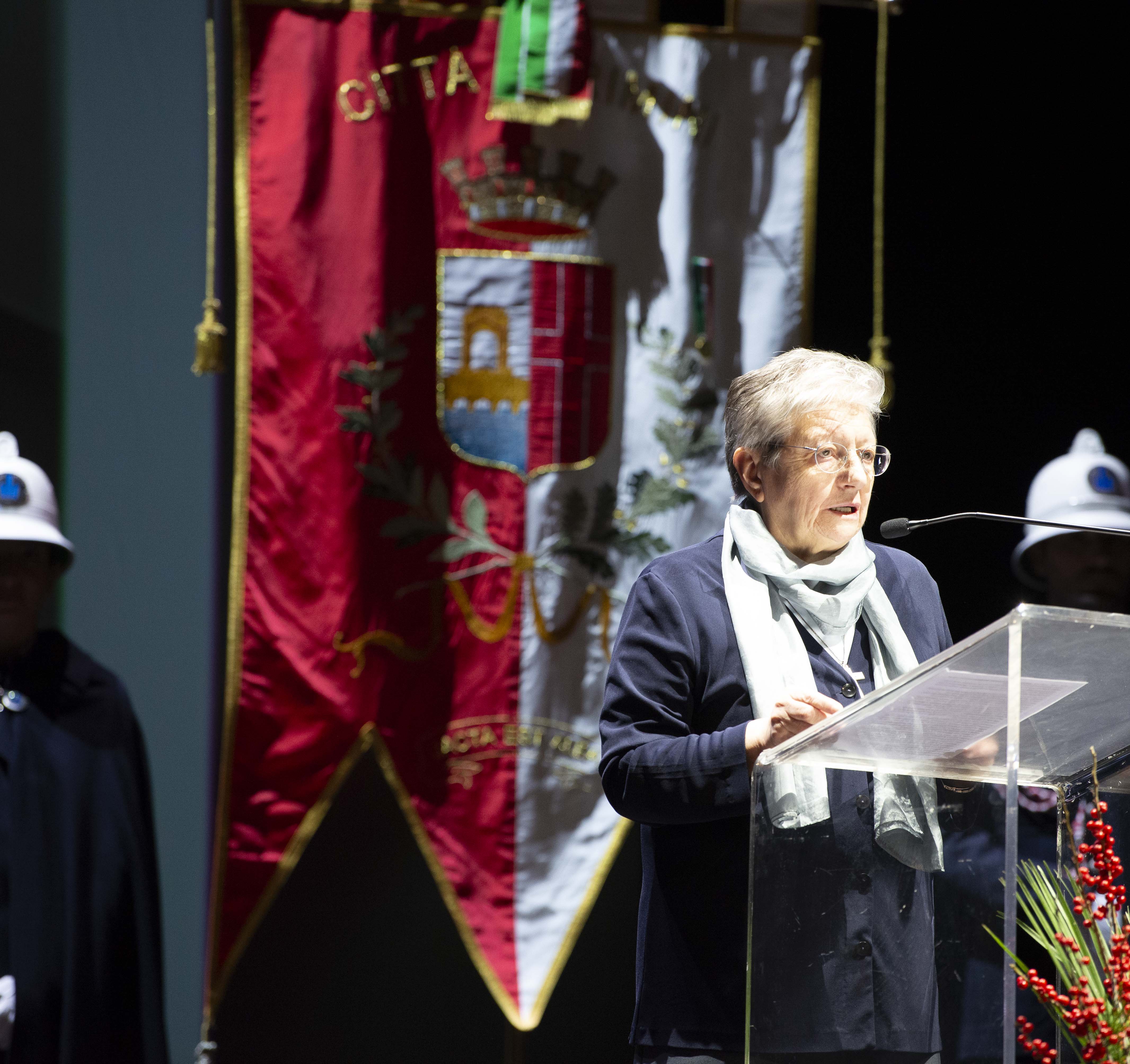 Dopo il discorso di ringraziamento di Maria Perchiazzi Guaraldi, la presidente del consiglio comunale Giulia Corazzi ha introdotto la seconda assegnazione del riconoscimento, leggendo la lunga storia biografica dell’Istituto Maccolini nato il 15 ottobre 1900 grazie alla Signorina Anna Maccolini che decise di dedicare la sua vita alle “povere vecchie abbandonate”. Terminata la lettura, la Superiora Provinciale d’Italia delle Suore di Carità di Maria Bambina, Suor Caterina Bonalda, ha ricevuto l’onorificenza e ha preso la parola per il suo discorso di ringraziamento.