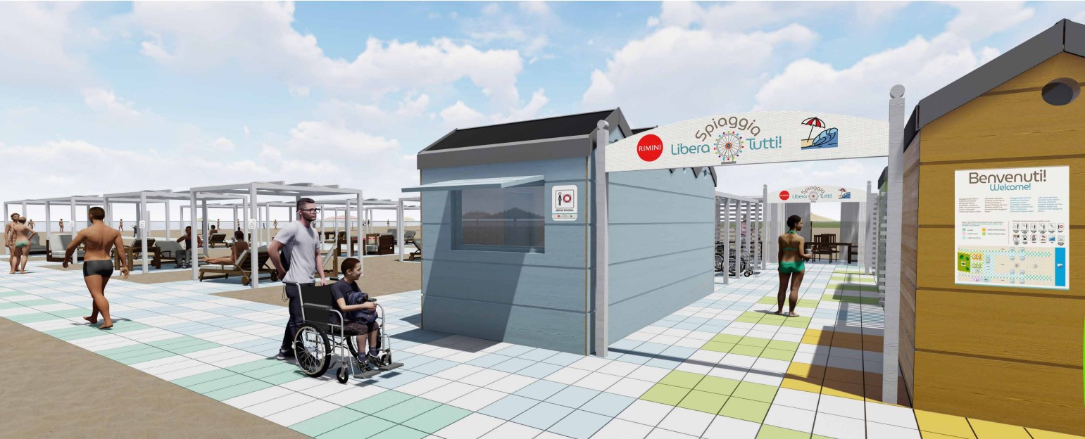 L’iniziativa rientra nell’ambito del progetto regionale al quale il comune di Rimini ha partecipato presentando il progetto ‘SpiaggiaLiberaTutti’ dal valore complessivo di 580mila euro (cofinanziato dalla Regione con 150mila euro e dal Comune di Rimini con 430mila euro) che riguarda principalmente la spiaggia libera di piazzale Boscovich ed è stato concepito per soddisfare le esigenze di tutti gli utenti, compresi quelli con diversi tipi di disabilità (psichiche, sensoriali, motorie), utenza, fasce di età ed è organizzato per spazi schematici, dislocati in modo sequenziale, facilmente ed univocamente individuabili e segnalabili, tutti su pedana, così come tutti su pedana sono i gazebo/ombrelloni, che trovano collocazione sia a destra che a sinistra della pedana. Gli ombrelloni degli utenti della spiaggia libera troveranno collocazione ovunque intorno ai gazebo. Il progetto permetterà a ‘tutti’, non solo di poter avere accesso, ma anche di poter fruire della spiaggia e poter vivere a pieno la stagione balneare a seconda delle proprie necessità.