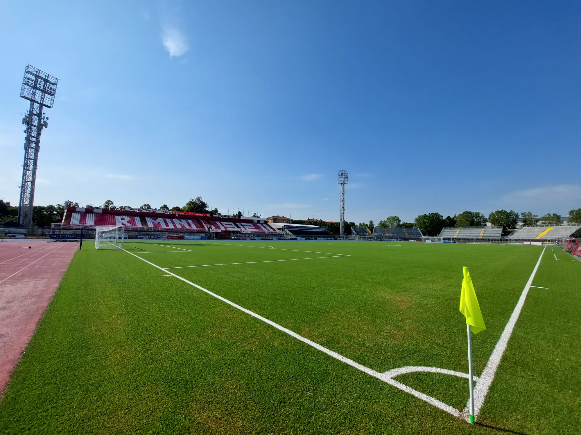 Il terreno da gioco, nello specifico, è composto da un manto in fibra sintetica in polietilene con intaso prestazione vegetale 100% organico, con sottotappeto performante drenante. Un restyling che ha comportato un investimento di 477.500 euro da parte dell’amministrazione comunale e che fa parte di un corposo piano di opere di manutenzione finalizzato a riqualificare e ammodernare lo stadio riminese. Al nuovo manto, si aggiungono anche la realizzazione di un playground in resina nella parte posteriore della tribuna ospiti con un intervento di asfaltatura e la riqualificazione della palestra Gemmani che sarà utilizzata come area hospitality. In parallelo, sono state messe a punto diverse opere di riqualificazione e tinteggiatura della tribuna centrale ed è stata implementata l’illuminazione pubblica esistente in adiacenza del perimetro dell’impianto.