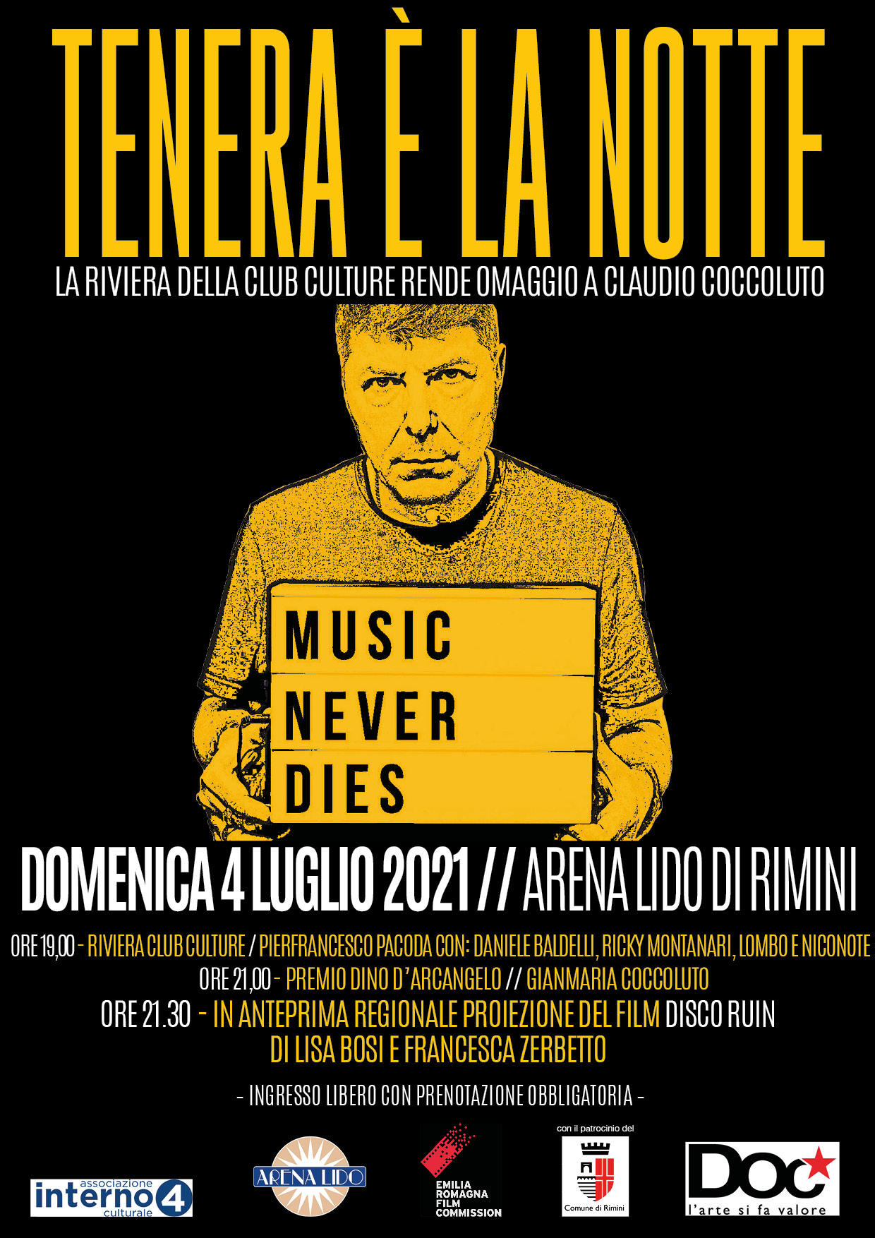 L’evento è organizzato dall’Associazione Culturale Interno4, con il patrocinio del Comune di Rimini e in collaborazione con Emilia Romagna Film commission, Wanted cinema, Doc Servizi e Arena Lido.
