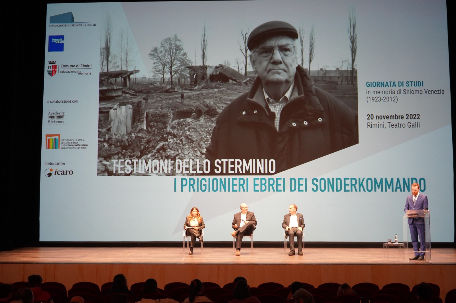 Si è svolto domenica 20 novembre nelle due sessioni - mattutina e pomeridiana - il primo convegno di studi sui Sonderkommando, “Testimoni dello sterminio. I prigionieri ebrei dei Sonderkommando”. Una giornata di studi e approfondimento storico che la città di Rimini ha voluto dedicare a Shlomo Venezia, in un Teatro Galli pieno di persone tra cui anche tantissimi giovani che al momento dell’ingresso - questa mattina - hanno fatto una lunga fila per entrare, fino alla piazza Cavour.