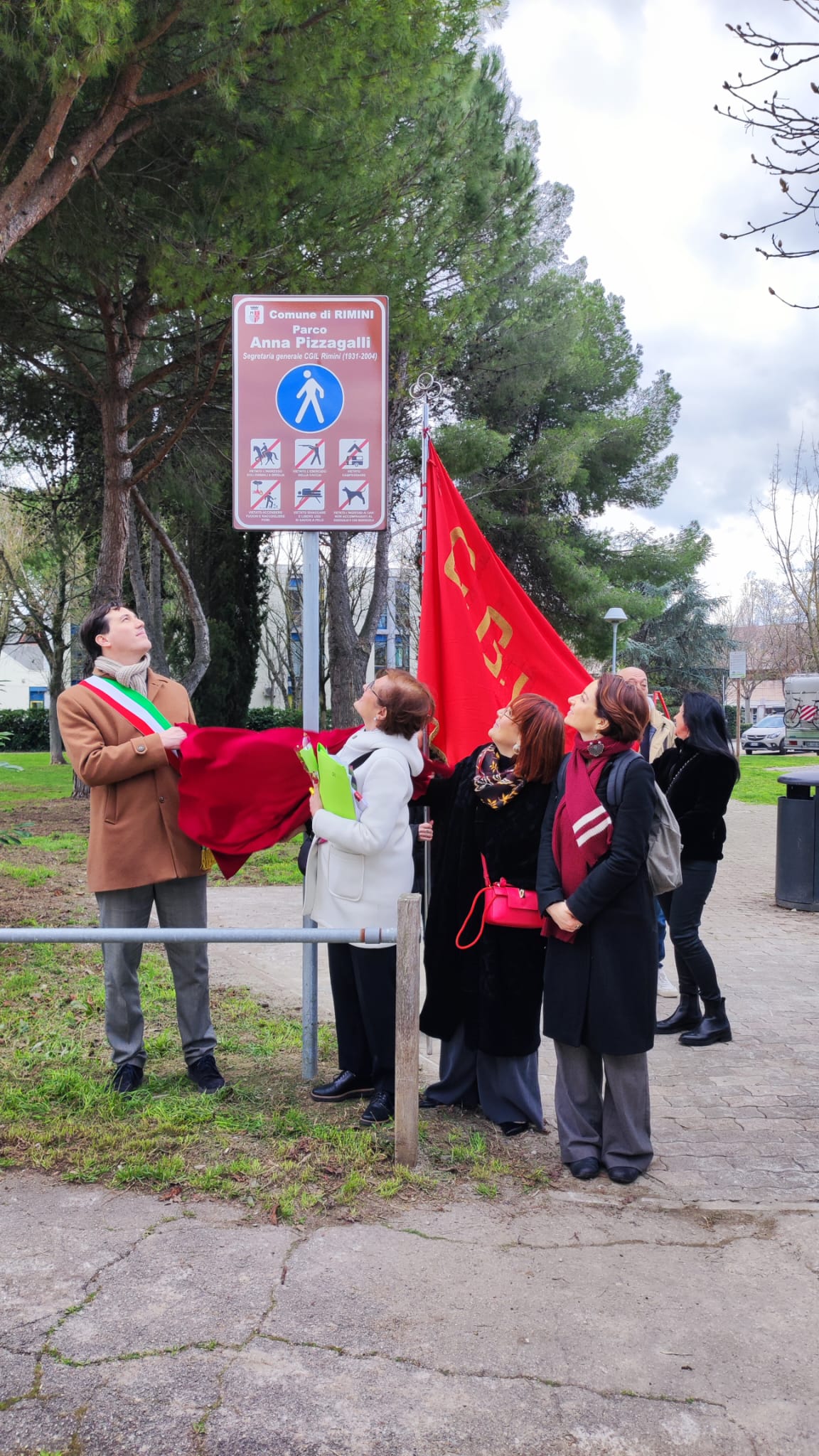 Una concittadina a cui questa mattina è stata intitolata l’area verde presente in via Francesco Baracca, vicino alla sede dei sindacati di via Marzabotto. Alla cerimonia erano presenti l’assessore Francesco Bragagni, la Segretaria Generale CGIL della provincia di Rimini, Francesca Lilli Parco con un nutrito gruppo di iscritti e simpatizzanti della CGIL e i famigliari di Anna Pizzagalli.