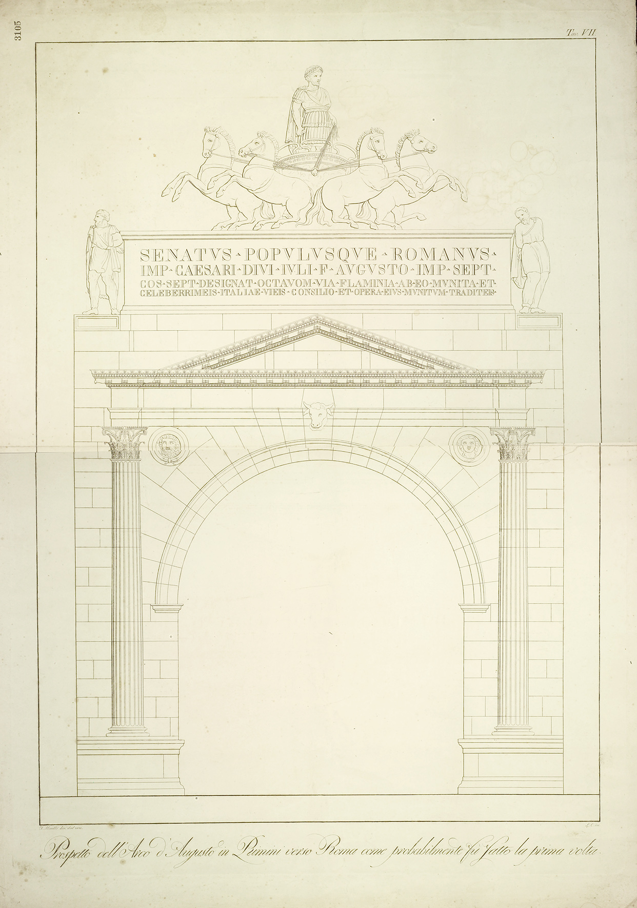 La firma di Luigi Carlini (1792-1833) su un centinaio di bellissime stampe conservate nelle collezioni gambalunghiane è stata a lungo la sola traccia della sua notevole attività di incisore. La sua personalità, ricostruita grazie ai numerosi documenti d’archivio ritrovati tra la Romagna e Bologna, svela uno scorcio di vita della Rimini di inizio Ottocento. Nato nel 1792, il giovane Luigi ricevette la prima formazione artistica nel ginnasio locale, per poi passare alla prestigiosa Accademia di Belle Arti di Bologna, seguendo le orme dei noti fratelli montescudesi Francesco e Giuseppe Rosaspina. I successi non tardarono ad arrivare, e il Carlini conseguì diverse vittorie nei concorsi accademici: la sua maturazione artistica gli permise di prendere parte ad imprese editoriali di tutto rispetto, la più importante delle quali fu la realizzazione delle tavole per l’Illustrazione dell’Arco d’Augusto in Rimini, prestigioso volume pubblicato da Maurizio Brighenti nel 1825. Il Carlini seppe legare le proprie sorti a doppio filo con quelle della nobile famiglia dei Lettimi: abitò nel loro grande palazzo cittadino e si dedicò al collezionismo artistico, creando una notevole raccolta di dipinti e stampe di pregio. Fu senza dubbio un protagonista della Rimini del suo tempo, che ora ritrova voce nel contesto della Biblioteca Gambalunga.