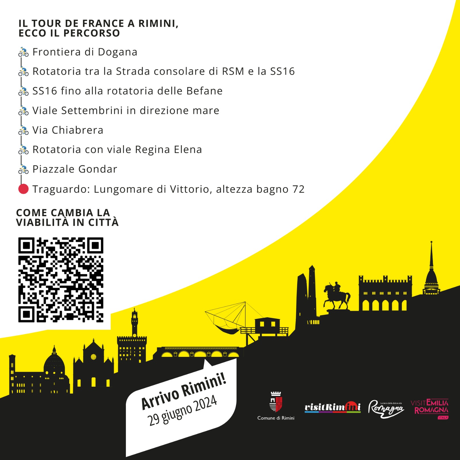 Inoltre, per gli spostamenti sud-nord e nord-sud, nella giornata di sabato 29 giugno è altamente consigliato utilizzare la tratta autostradale Rimini Nord-Riccione. Le modifiche coinvolgono anche le linee di trasporto pubblico locale e le operazioni di raccolta dei rifiuti da parte di Hera (tutte le info https://www.comune.rimini.it/tour-de-france-2024)