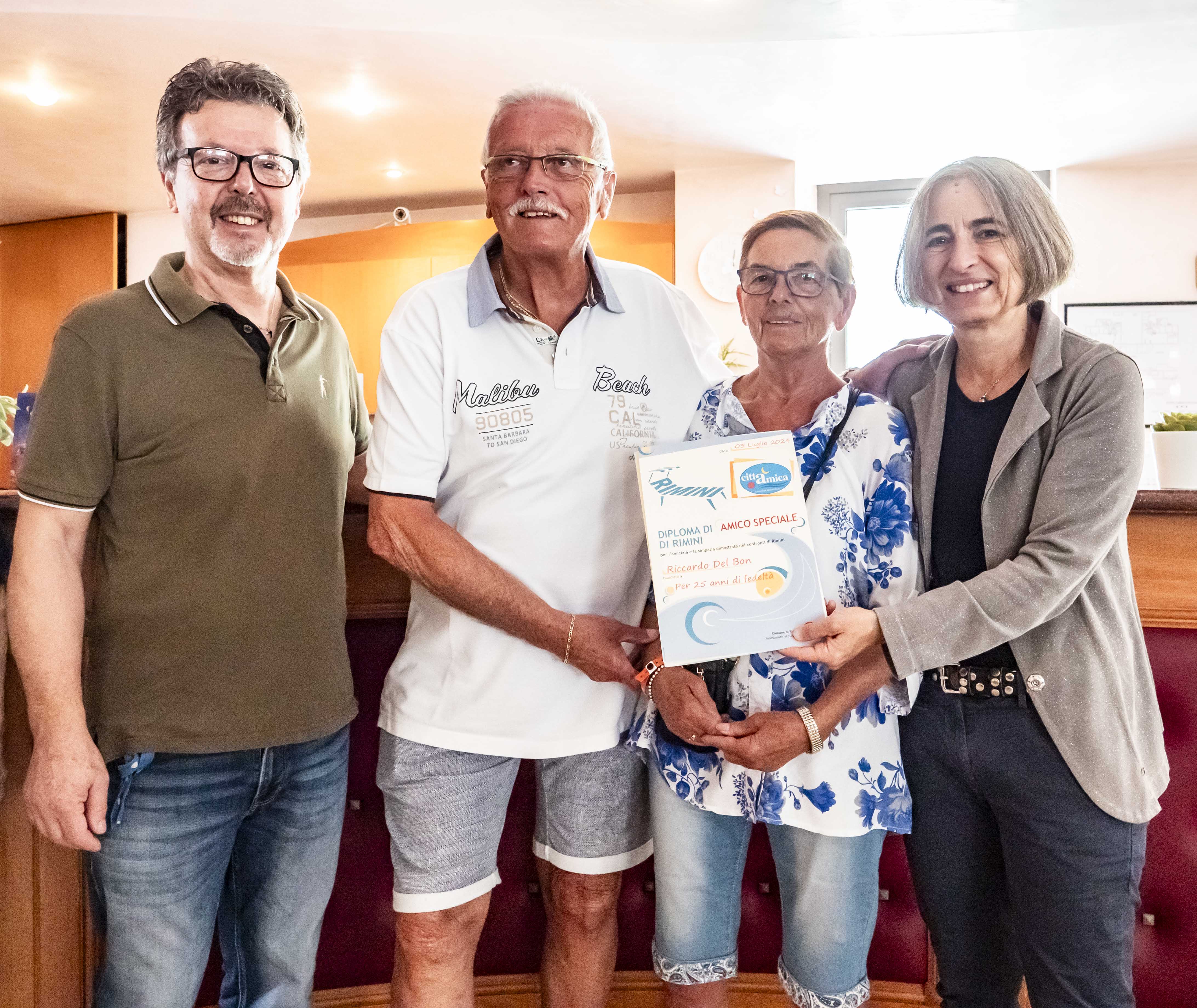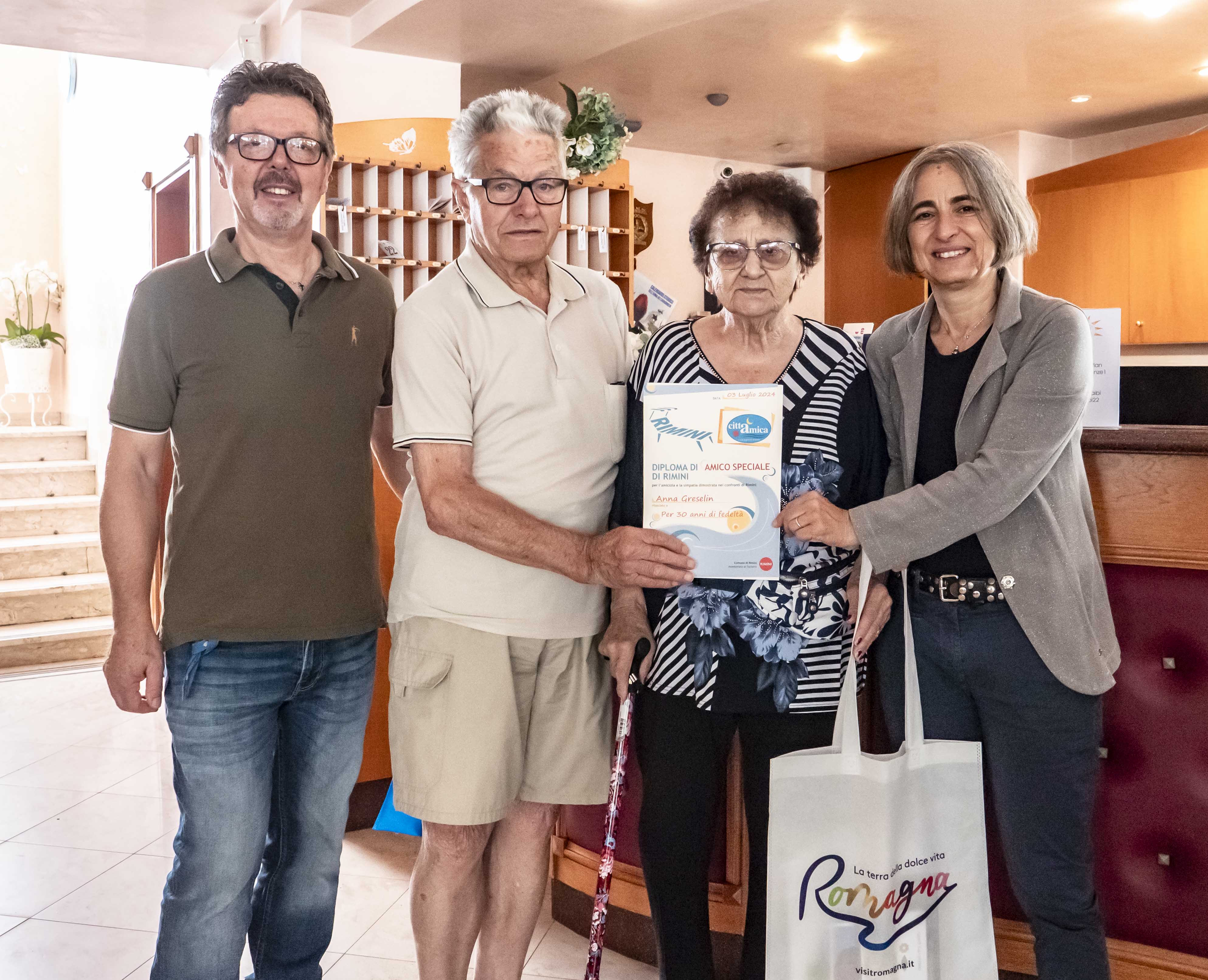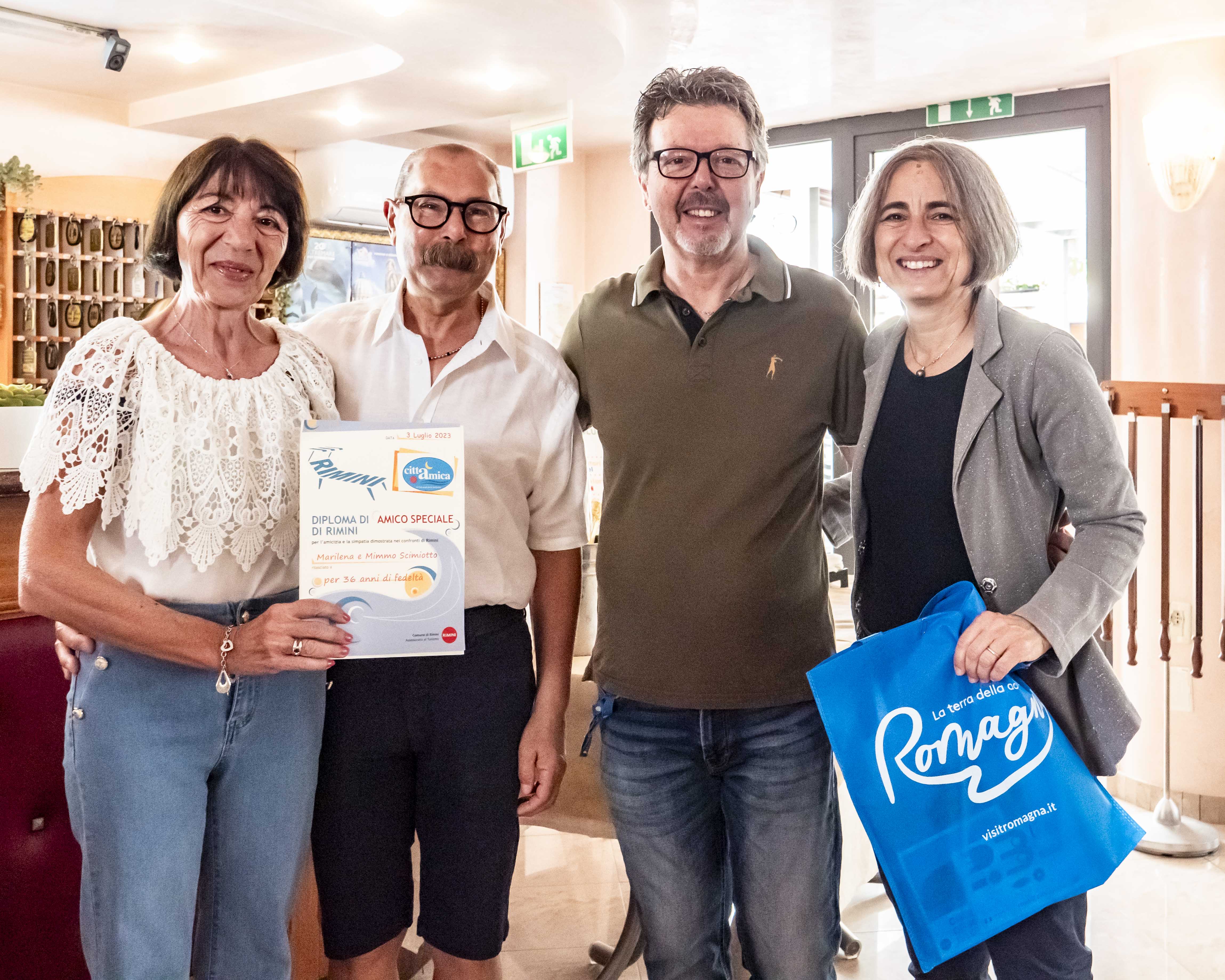 A ringraziarli e congratularsi per la loro amicizia con la città di Rimini, l’assessora Anna Montini che ha consegnato l’attestato di “Turista Fedele”.