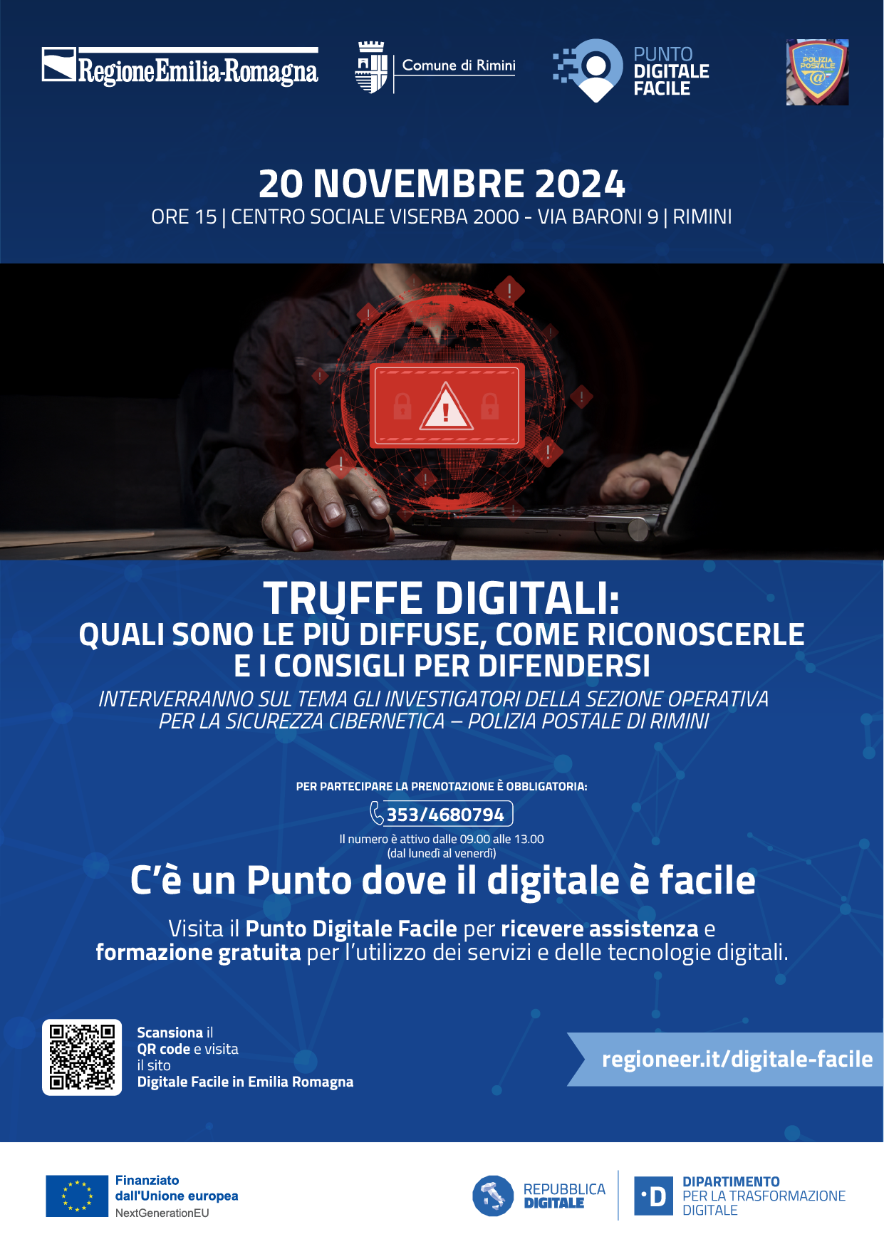 Le truffe digitali sono in costante aumento e minacciano la sicurezza di chi naviga su internet. Per affrontare questo problema, il progetto “Rimini: il digitale a portata di mano” organizza un evento informativo dal titolo “Truffe digitali: le più comuni, come riconoscerle e come difendersi”.