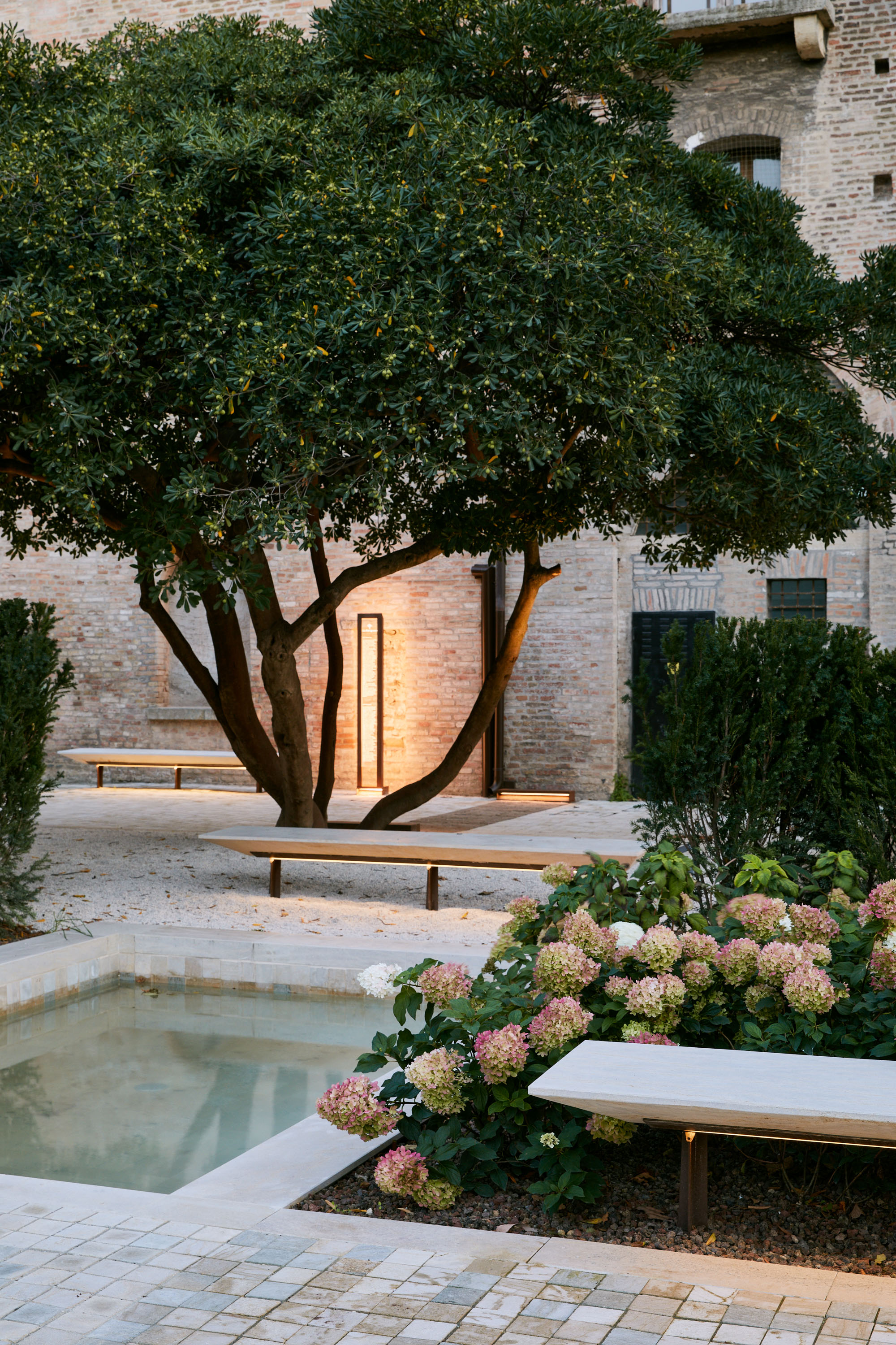 Concepito come un’estensione del percorso espositivo, il Giardino sarà accessibile anche dall’ esterno gratuitamente. All’interno del perimetro vegetale, che interpreta una versione attuale del tipico giardino all’italiana ed evoca l’idea di rovina nell’intrecciarsi di componente muraria e naturale, il visitatore scopre una selezione di sette sculture d’arte contemporanea allestite in“stanze espositive” all’aperto: le opere appartengono agli artisti Alberto Garutti, Paul Kneale, Giuseppe Penone, Arnaldo Pomodoro, Kiki Smith, Piotr Uklanski e Chen Zhen.