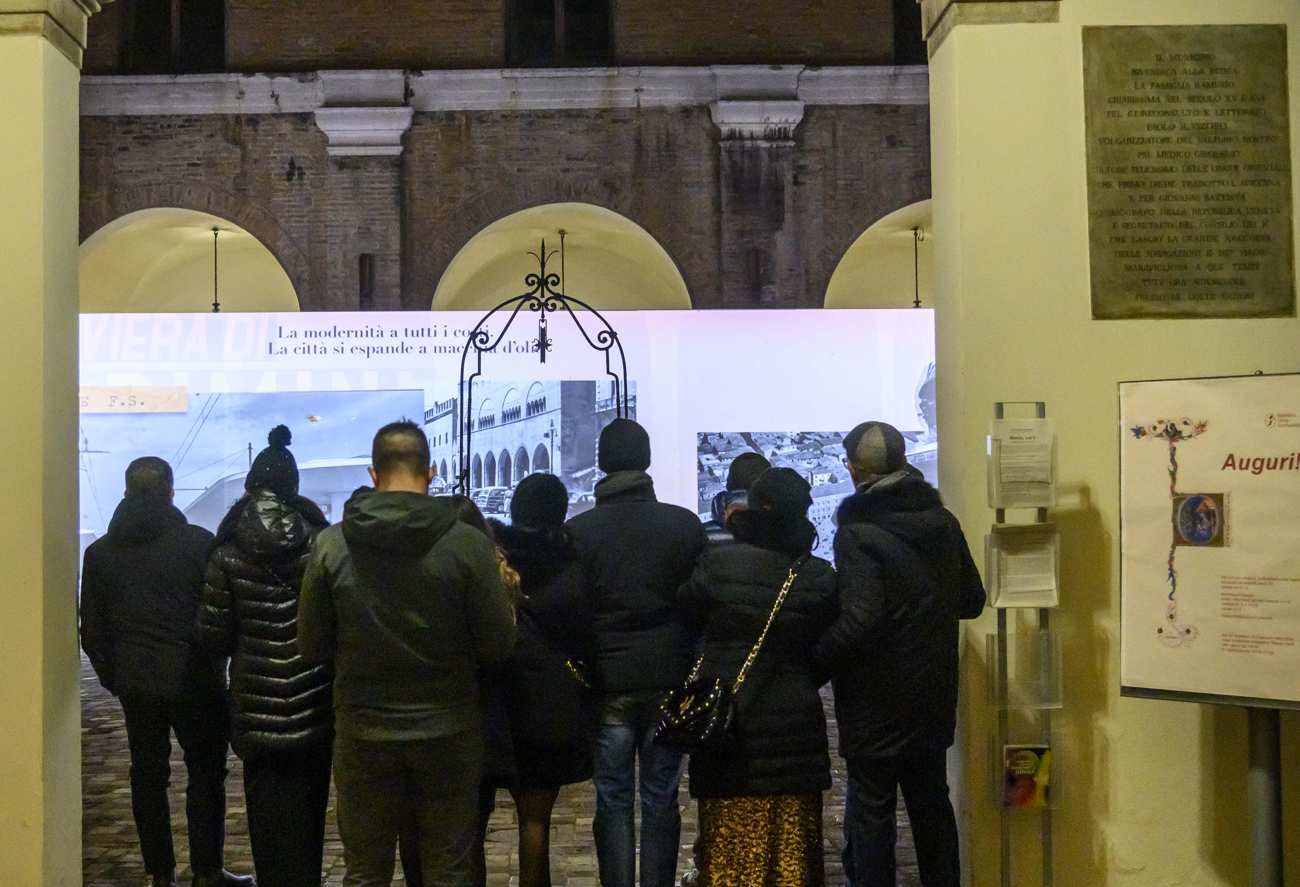 Ultimi giorni per la videoproiezione immersiva nella corte della Biblioteca Gambalunga che apre le sue porte con "Rimini, cos'è", una storia per immagini del cinema e della fotografia, della grafica dei manifesti e delle riviste, che racconta Rimini negli ultimi due secoli (fino al 6 gennaio, ore 16-19)