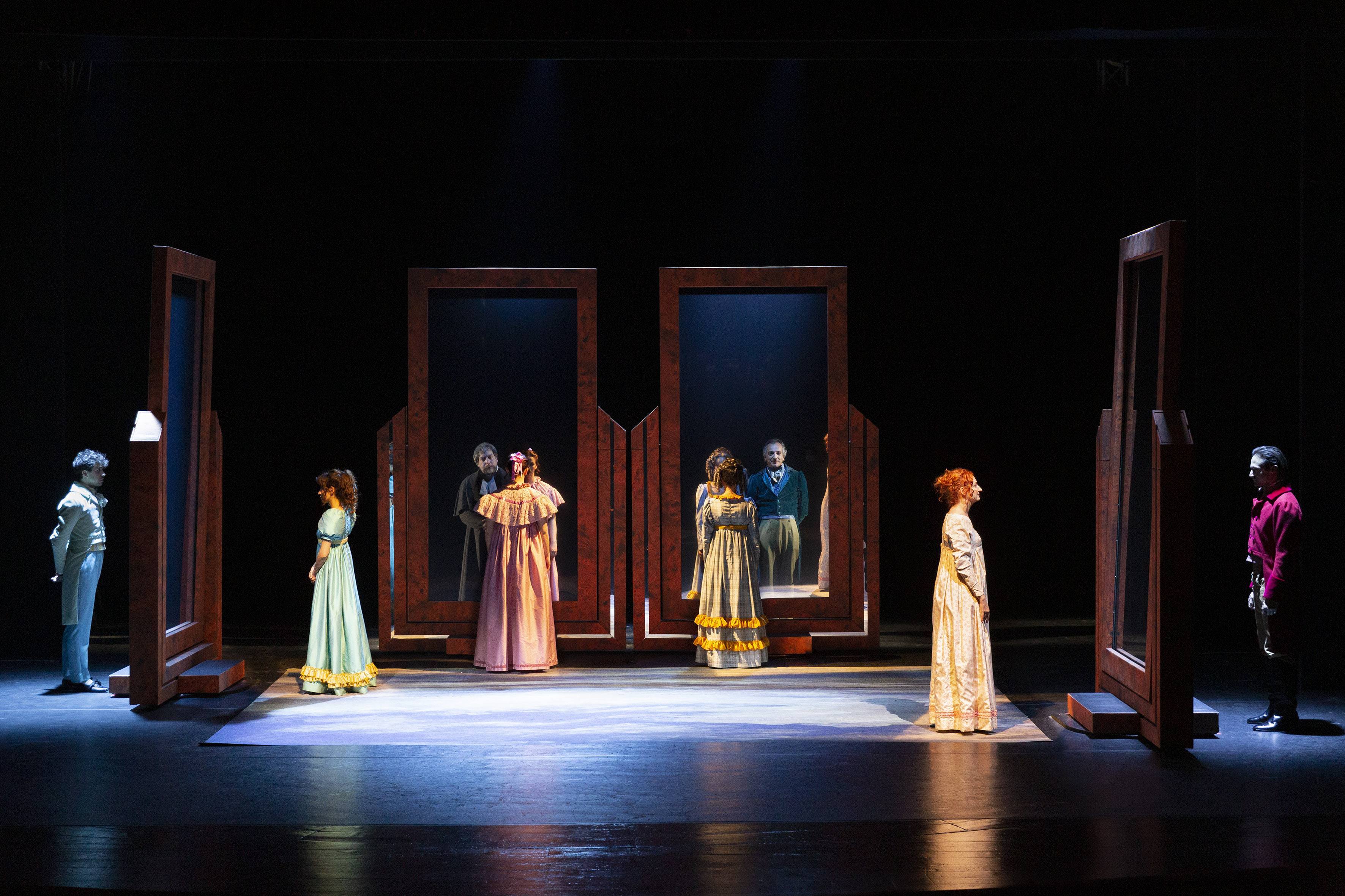 Arturo Cirillo mette in scena, per la prima volta nella versione teatrale italiana, uno dei grandi romanzi dell’ottocento, 'Orgoglio e pregiudizio' di Jane Austen, scrittrice con un dono folgorante per i dialoghi, capace di calarsi nei suoi personaggi/alter ego amandoli e prendendoli un po’ in giro. Magari standosene nascosta dietro una tenda a osservarli, ridacchiando tra sé, come nel buio di una quinta, celata agli sguardi altrui, ma attenta a non farsi sfuggire nulla di ciò che accade, reinventando la realtà attraverso la sua rappresentazione, come avviene in teatro, senza mai smettere di essere vera. Questo suo mondo, dove apparentemente non accade mai nulla di eclatante, abitato per la maggior parte da creature che stanno abbandonando la fanciullezza, con tutto il pudore, i turbamenti, le insicurezze e anche l’orgoglio e i pregiudizi che la giovinezza porta con sé, non sembra poi così lontano da noi.