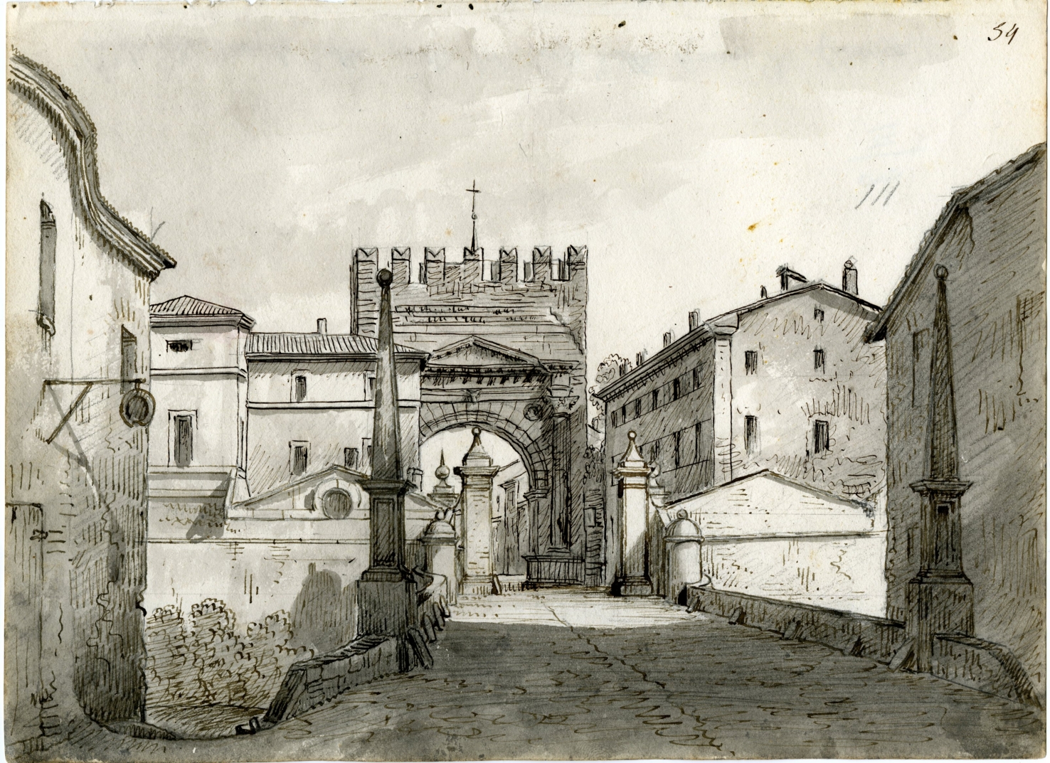 Il volume racconta dei Liverani di Faenza: artisti strettamente imparentati. Romolo e suo figlio Tancredi, piccola famigliola per anni viaggiante in gran parte d’Italia a servizio dell’arte teatrale, di quel mestiere della scenografia in cui diventarono stimatissimi. Di teatro in teatro, spesso con tappe così poco distanti tra loro da poterle percorrere nel giro di un giorno, documentarono nei loro taccuini ‘di lavoro’ scorci di paesi e città, vedute, monumenti e paesaggi con una precisione quasi fotografica. E poi Antonio, fratello maggiore del primo e dunque zio del secondo; tra i tre quello rimasto più in ombra e che ci ha lasciato, comunque, testimonianze enormi di un grande lavoro come pittore e ornatista operante nelle residenze delle maggiori famiglie patrizie, e non solo, del proprio tempo. Una ristretta e fidatissima bottega a conduzione famigliare, come è stata definita, che ci fa conoscere una Rimini in gran parte inedita attraverso quasi cinquanta tavole prodotte tra il 1844 e il 1867 e divise oggi tra la Biblioteca Nazionale Centrale di Roma, la Biblioteca Comunale di Forlì e la Pinacoteca Comunale di Faenza. Due bellissimi disegni di Romolo Liverani dedicati al paesaggio appenninico dell’Acqua Cheta sono esposti in queste settimane alla mostra “Grotte, cascate e forre. Il Grand Tour della natura” nell’ambito della 4^ Biennale Disegno di Rimini, in corso nelle Sale antiche della Biblioteca Gambalunga fino al 28 luglio.