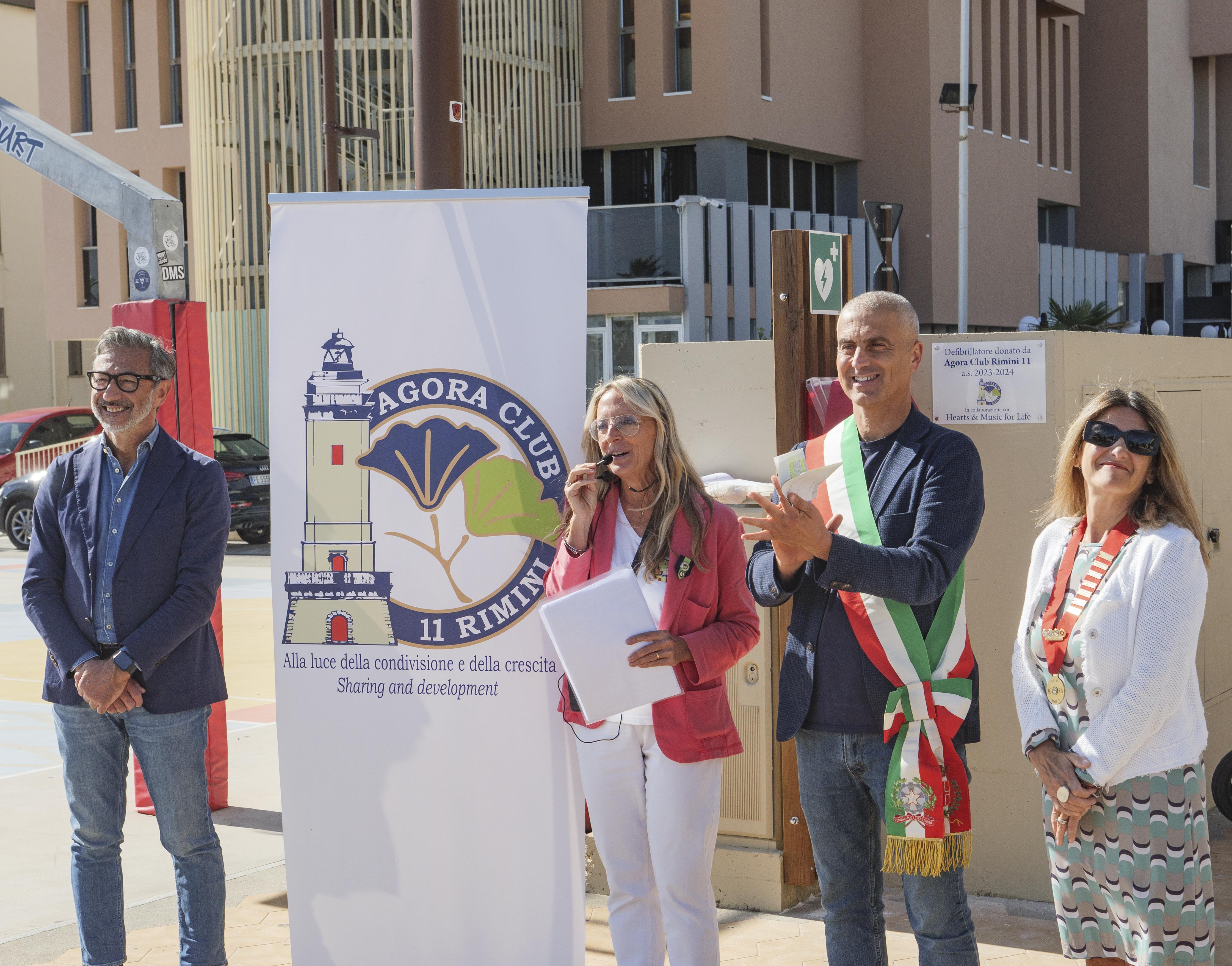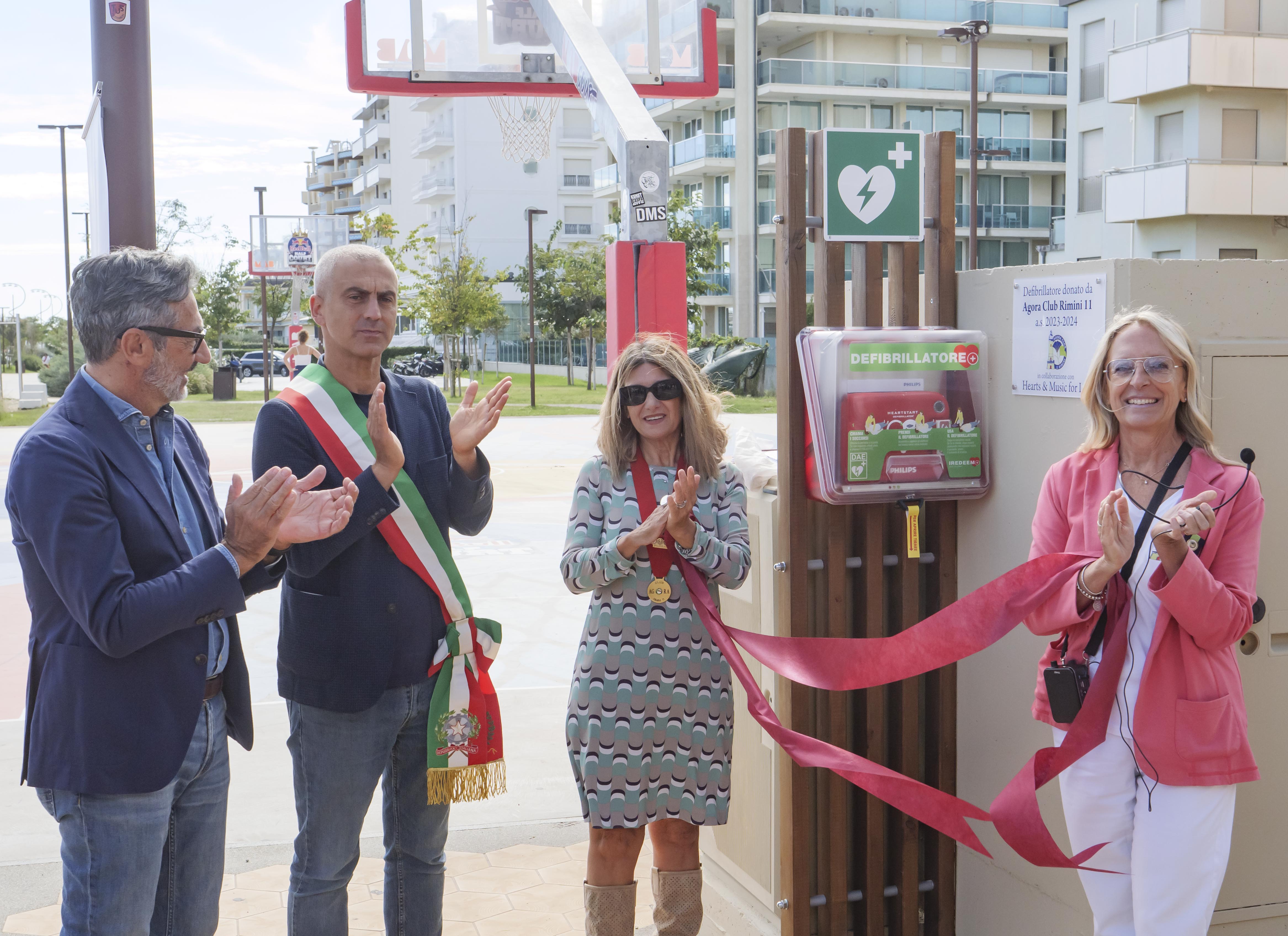 Un nuovo defibrillatore nel cuore della marina. Si trova in piazzale Kennedy, a pochi passi dal playground diventato punto di riferimento e di ritrovo per gli sportivi e a servizio del Belvedere, suggestivo e frequentatissimo balcone sul mare di Rimini il nuovo dispositivo salvavita donato alla città dal Club Agorà Rimini. Una donazione ufficializzata questa mattina, alla presenza del sindaco Jamil Sadegholvaad, delle rappresentanti dell’associazione Michela Torri e Cinzia Collevecchio e del medico cardiologo Andrea Santarelli, per un momento inaugurale che segue di solo poche settimane l’installazione di un altro defibrillatore sulla parete della casina dei matrimoni di largo Boscovich, anch’essa sostenuta dal Club Agorà Rimini.