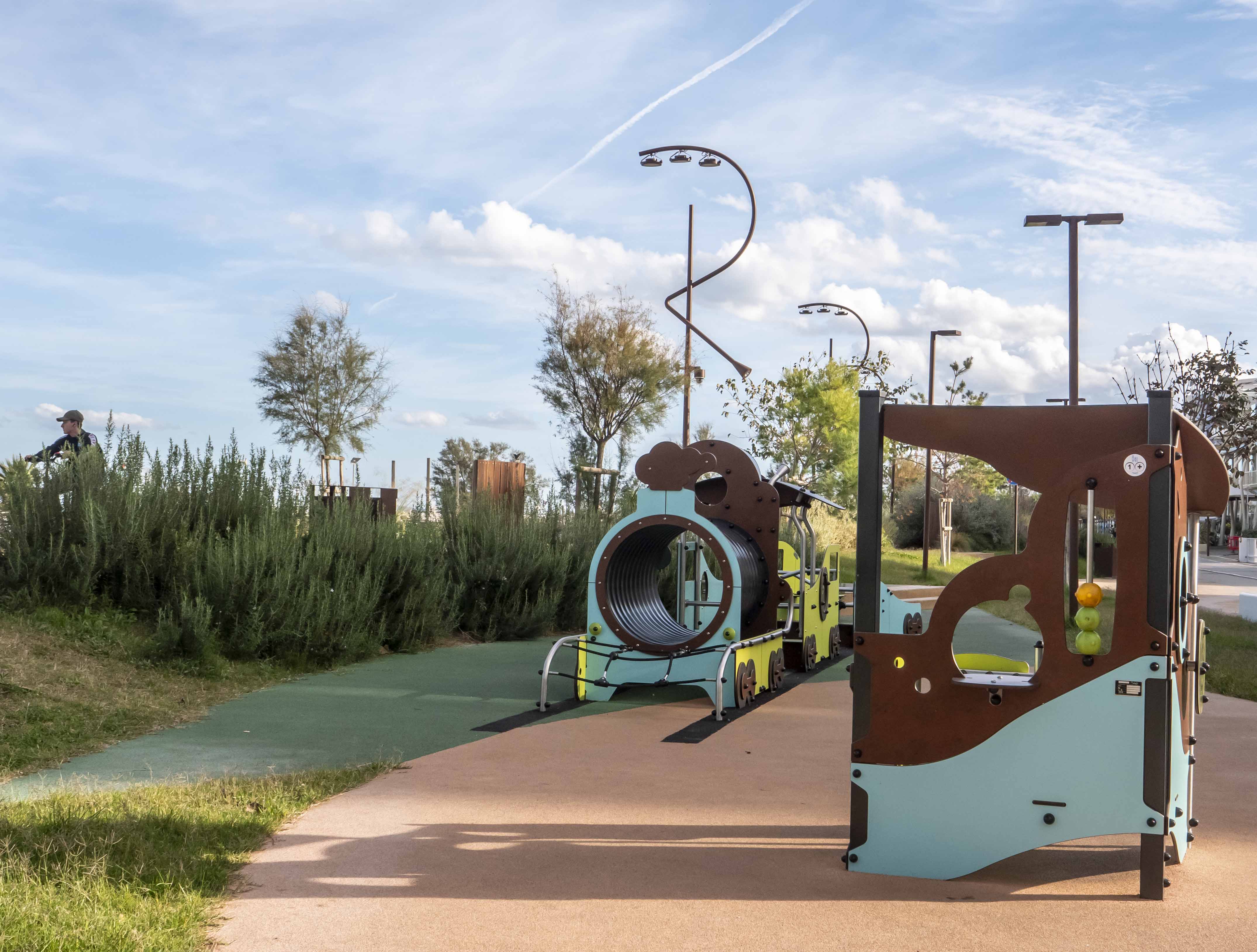 Ogni elemento che compone l’infrastruttura del Parco del Mare è pensato in termini di funzionalità, fruibilità, inclusione e sostenibilità, a cominciare dalle strutture ludiche a cielo aperto, che mirano a un divertimento sano dei bimbi, che davanti alla spiaggia trovano spazi dove socializzare, fare amicizia e stare in un contesto naturale e salubre.
