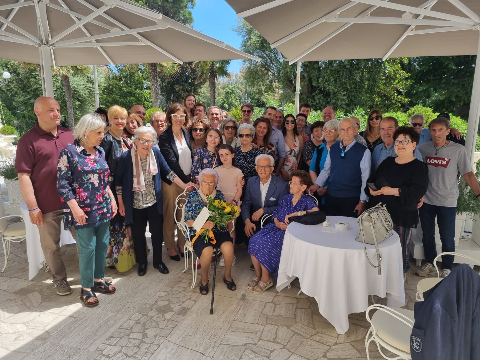 Un compleanno speciale trascorso al Grand Hotel di Rimini insieme ai familiari più stretti, ai figli, ai nipoti e ai pronipoti, compresi i fratelli Lucia e Floriano, un po’ più giovani di lei, ma anche loro vicini al secolo di vita.