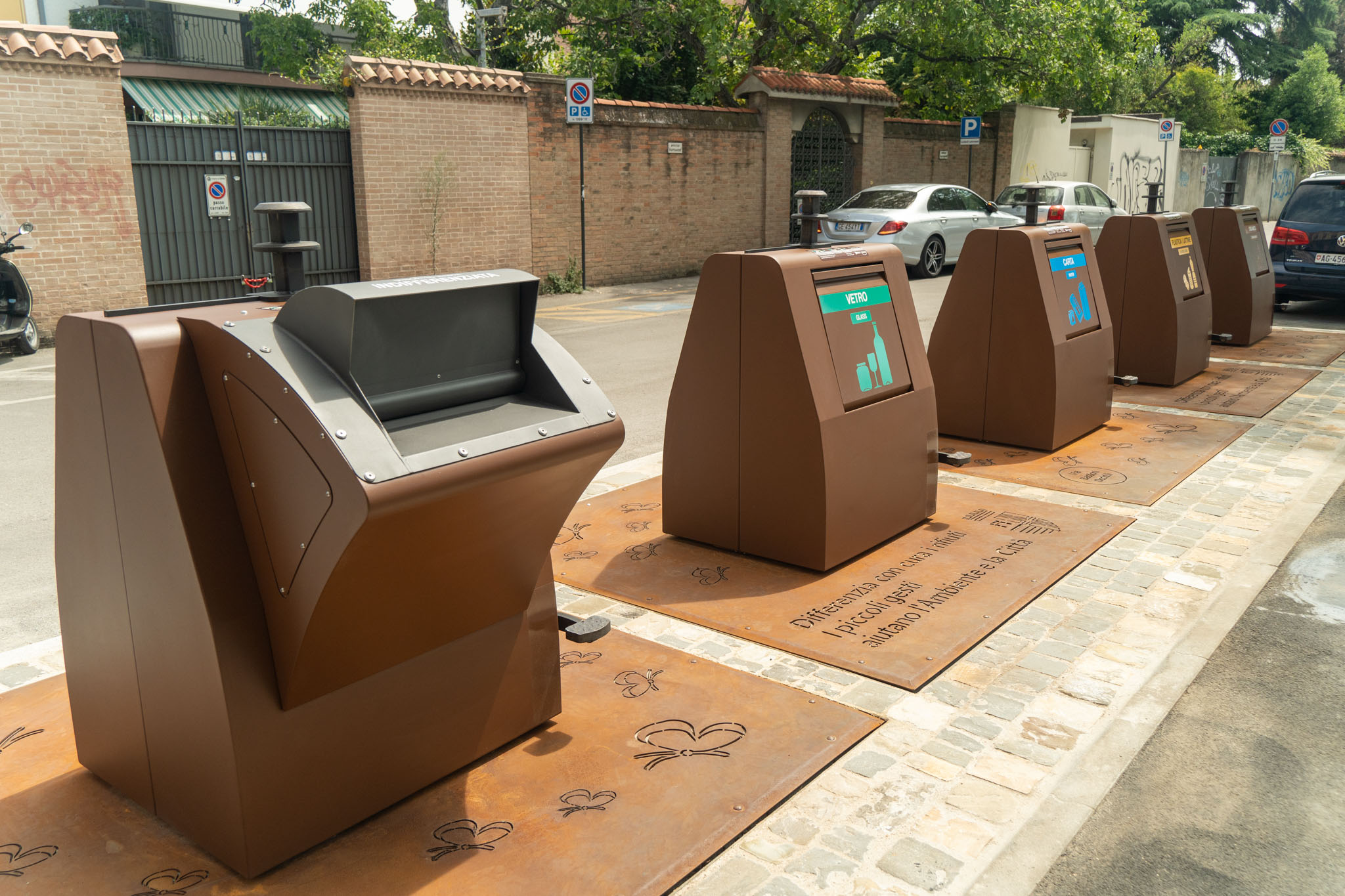 Ogni postazione sarà composta da cinque contenitori interrati per la raccolta dei principali rifiuti prodotti in ambito urbano e sono dotati di una capacità di raccolta superiore a quella dei cassonetti su strada presenti in centro storico, con una capacità di 5 metri cubi per carta, plastica e indifferenziata e di 3 metri cubi per organico e vetro, contro rispettivamente 1,7 metri cubi e 0,36 metri cubi degli attuali contenitori. Questa maggiore capacità consente anche una riduzione dei passaggi dei mezzi di raccolta, con conseguenti vantaggi anche sul fronte dell’inquinamento atmosferico.