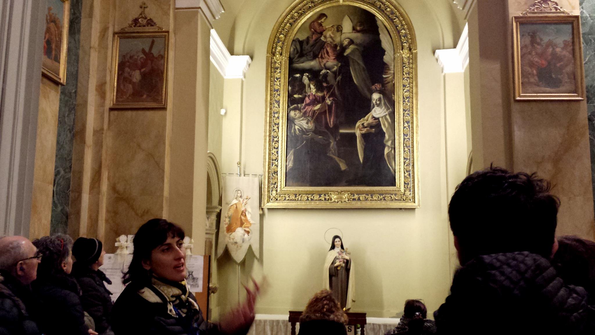 Il percorso parte dalla Chiesa di San Giovanni Battista, un edificio legato a un evento significativo nelle vita del pittore Guido Cagnacci, protagonista di primo piano dell’arte del Seicento, e che racchiude lo splendido dipinto con l’Estasi di Santa Teresa d’Avila: Teodora pagò la fuga d’amore e la promessa di matrimonio con la reclusione in convento ed un processo, mentre il pittore riuscì ad evitare l’arresto rifugiandosi nella chiesa di San Giovanni Battista ma dovette abbandonare Rimini.