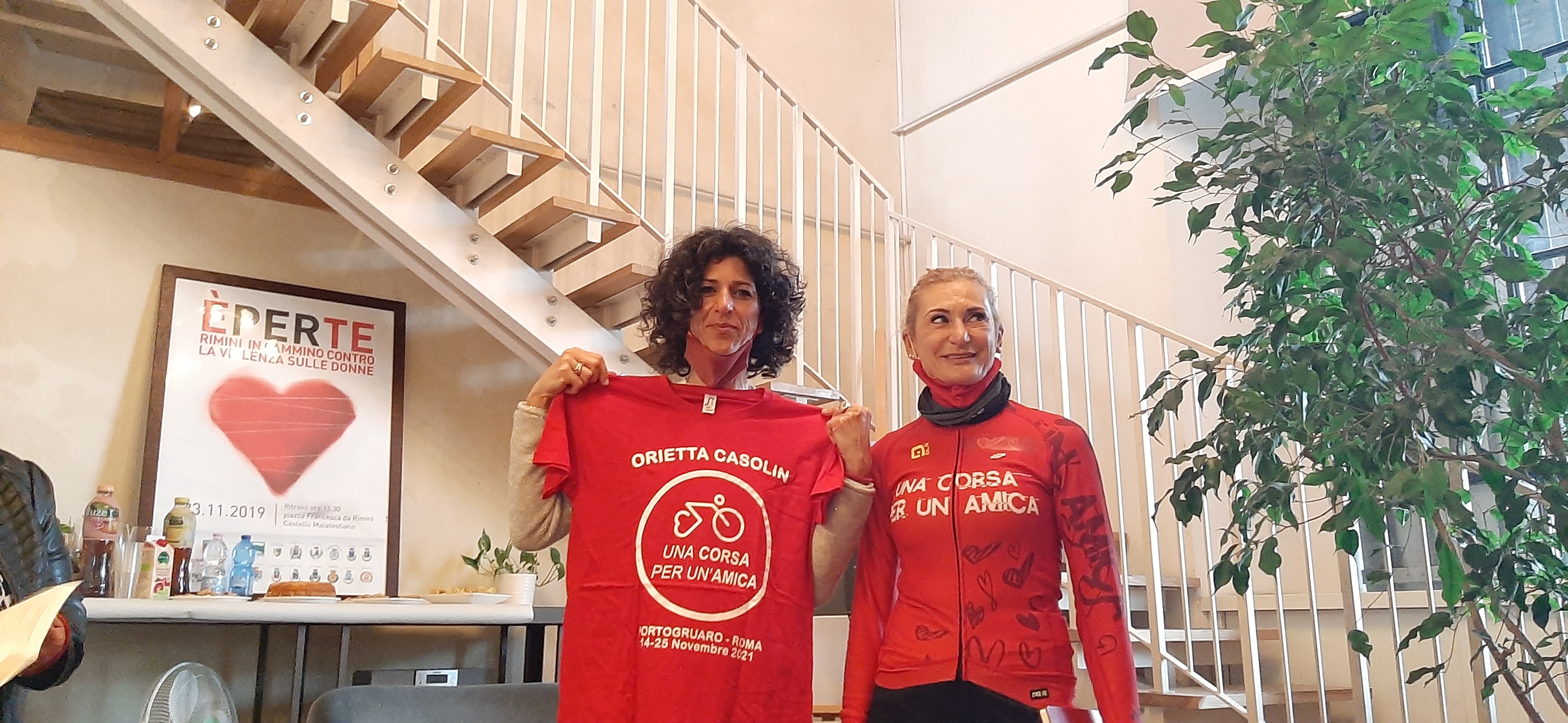 "Una corsa per un'amica": Orietta Casolin continua il suo viaggio contro la violenza sulle donne. Questa mattina tappa alla Casa delle donne di Rimini