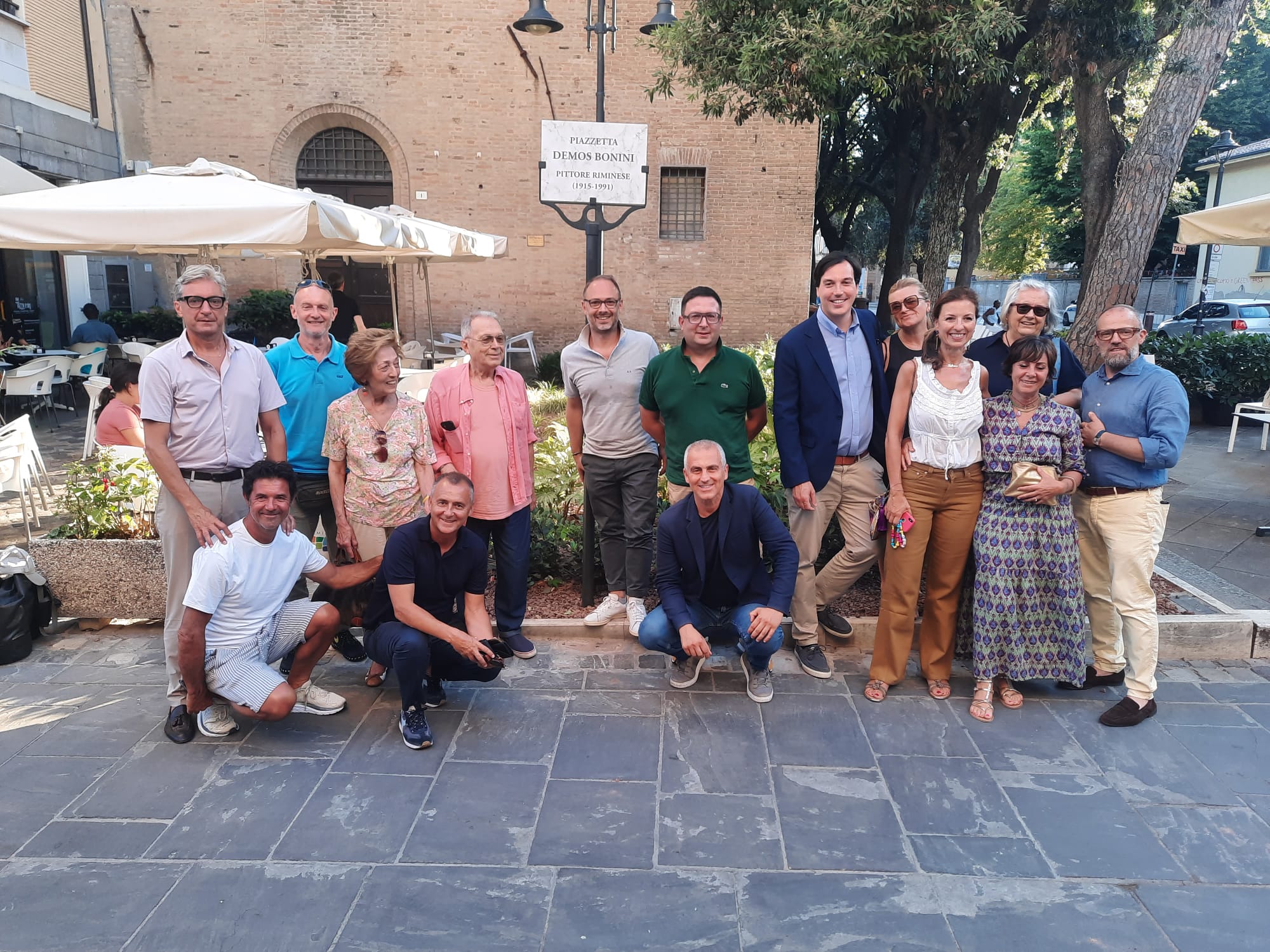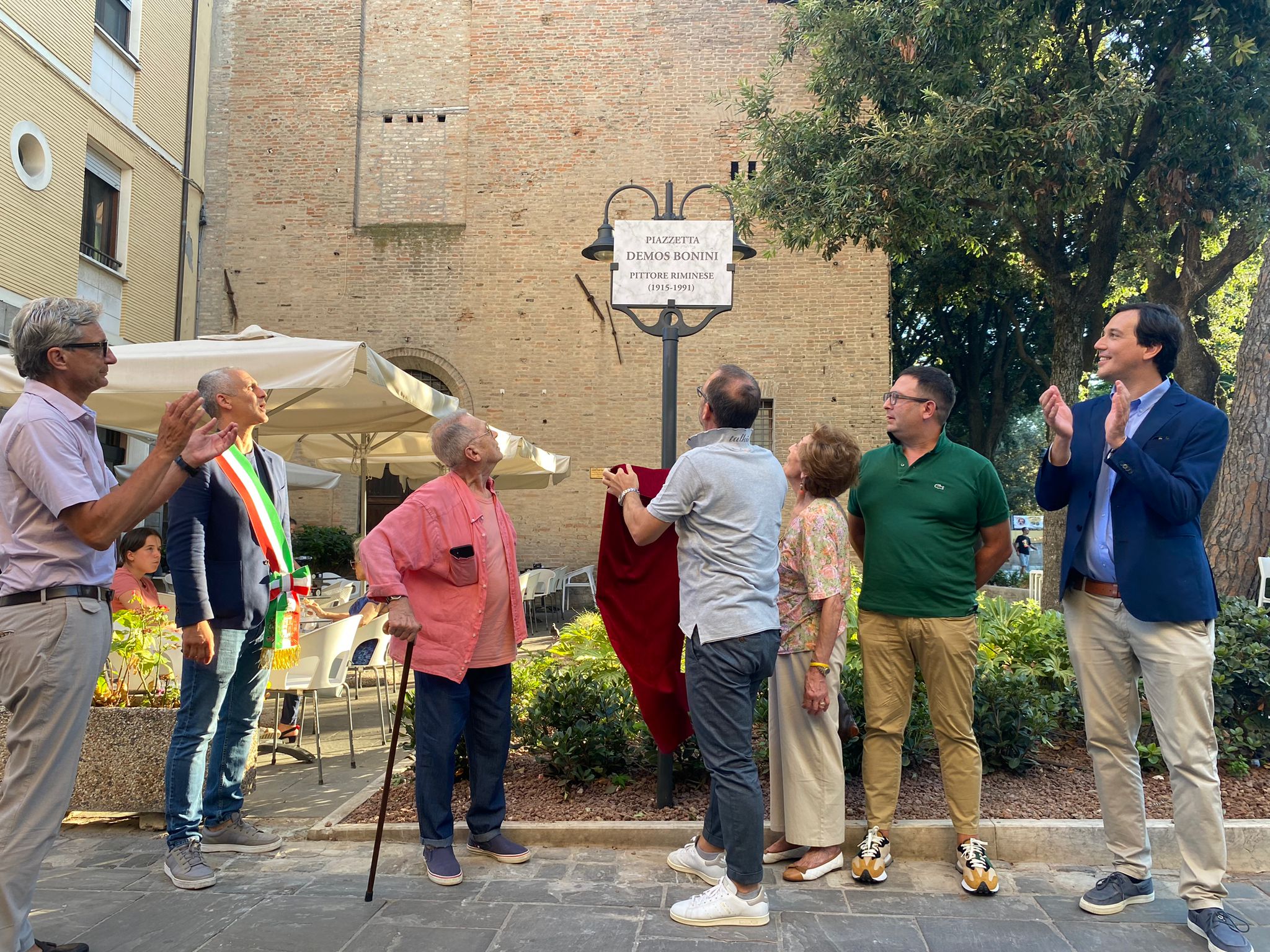 Una cerimonia informale, tra famigliari e amici, quella svolta ieri in centro storico tra via Castelfidardo e via IV Novembre, nella piazzetta che da ieri porta ufficialmente il nome del pittore Demos Bonini. Presenti alla intitolazione tra gli altri il figlio Aureliano Bonini (Sigismondo d’oro 2022), i nipoti Stefano e Massimo, insieme al sindaco Jamil Sadegholvaad e all’assessore alla toponomastica Francesco Bragagni. Presente anche l’onorevole Andrea Gnassi. Il sindaco ha ricordato Demos Bonini, come “uno dei grandi artisti del Novecento riminese che ha saputo celebrare e descrivere la sua città, soprattutto in un momento complicatissimo come il dopoguerra, immortalando l’orgoglio riminese anche nei suoi quadri”. L’assessore Bragagni ha invece sottolineato come “questa intitolazione persegue l’obiettivo di valorizzare quei concittadini che non solo sono ricordati e godono dell’affetto della comunità, ma che hanno tenuto alto il nome di Rimini nel Paese. E Demos, che nella sua vita ha intessuto relazioni e scambi con artisti come Guttuso e De Pisis, ma soprattutto grazie alle sue opere che ne fanno uno dei migliori pittori contemporanei italiani, ha sicuramente reso onore alla nostra città”.