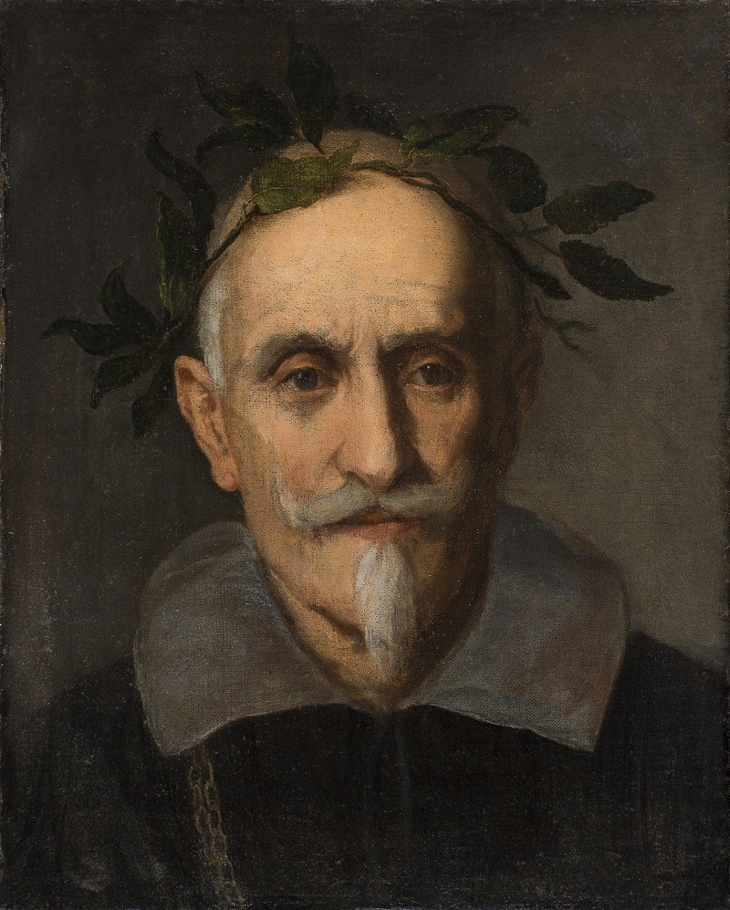 Il ritratto era già conosciuto nell’ambito degli studi storico-letterari a partire dal 1935, per essere stato esposto e commentato da Adamo Pedrazzi nella sua “Iconografia Tassoniana”. Riprodotto in seguito da diversi altri studiosi, se ne erano poi perse le tracce fino a questa fortunata riscoperta. Il viso frontale, il languido vibrato pittorico dello sguardo, così come la maniera di lumeggiare e di chiaroscurare sembrano venire da quella cultura baroccesca che l’artista assorbì nella prima metà del Seicento. Si può inoltre confermare l’identificazione del soggetto nel famoso autore de La secchia rapita, Alessandro Tassoni (Modena 1565 – 1635), qui fregiato con una corona di edera.