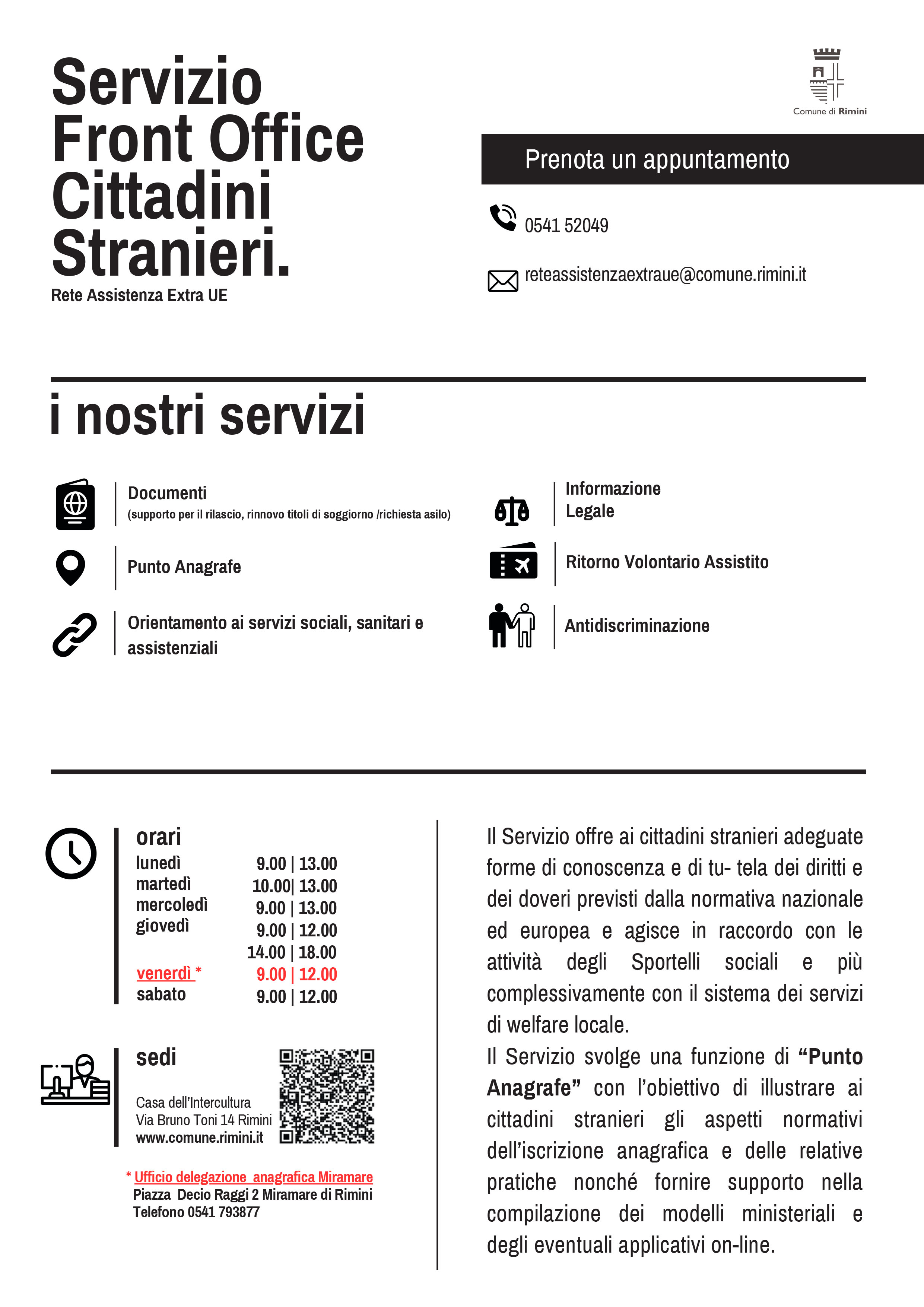Per informazioni contattare esclusivamente lo Sportello di Via Toni 14 Rimini e solo il venerdì la Delegazione anagrafica di Miramare.