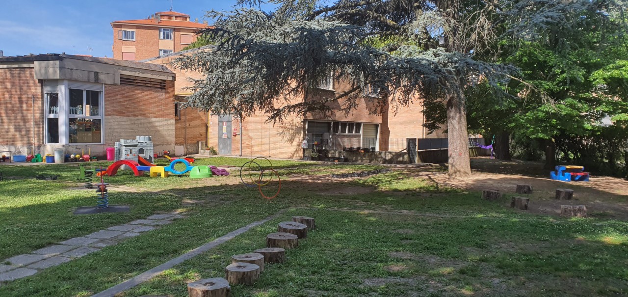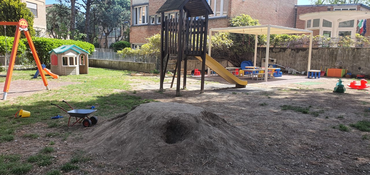 La scuola è dotata di due giardini allestiti con macro strutture utilizzate per attività di movimento.