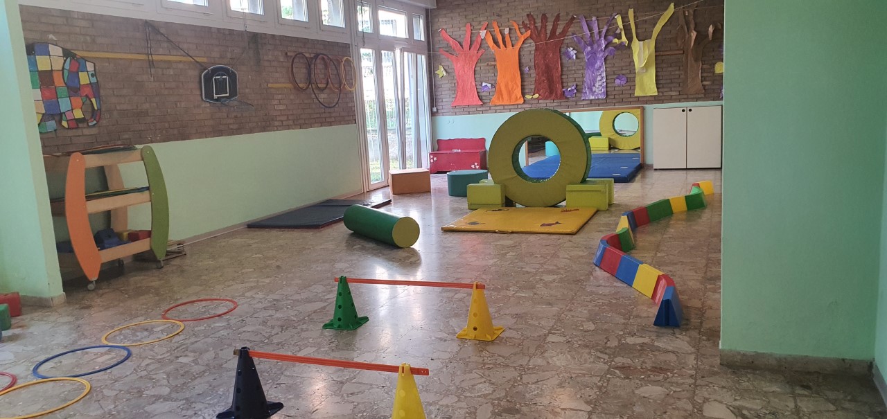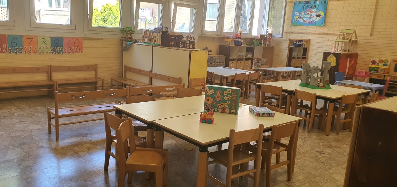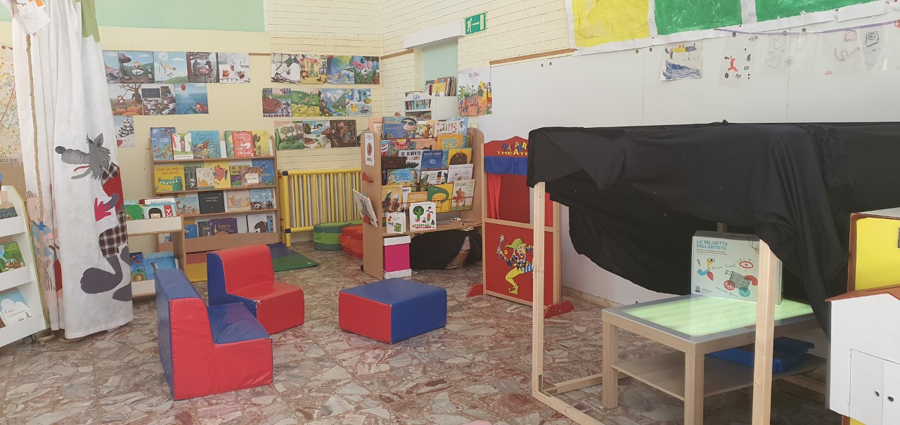 La scuola è ubicata al centro del quartiere INA-CASA con giardino per giochi all'aperto ed è così distribuita: SEMINTERRATO: ampio salone attrezzato all'occorrenza con materiale strutturato per attività motorie collegato con una scala interna al piano rialzato.
