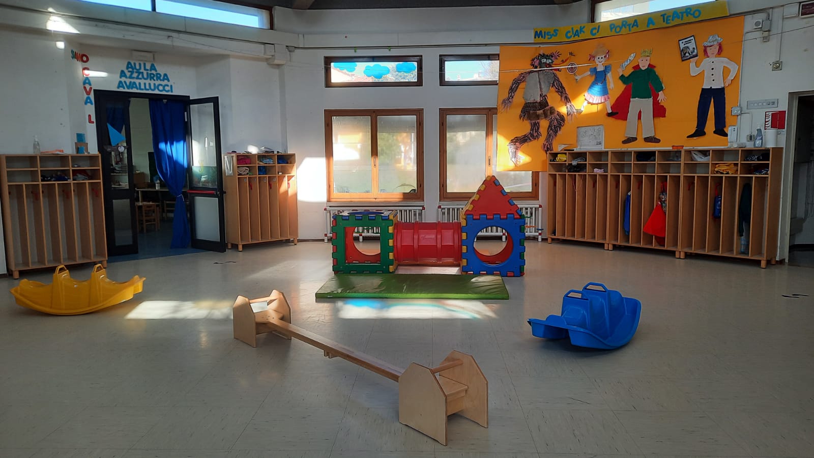 - un salone per il gioco libero, le attività psicomotorie e i momenti di intersezione. In tale spazio viene allestito l'Atelier (spazio di emozioni e creatività)